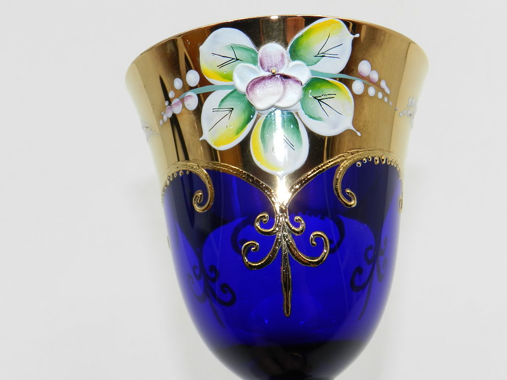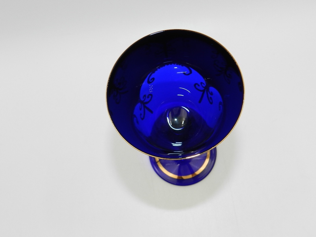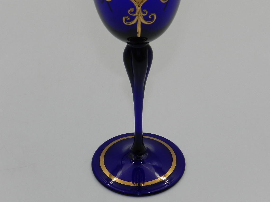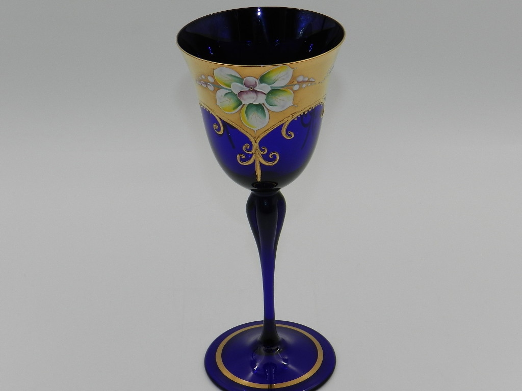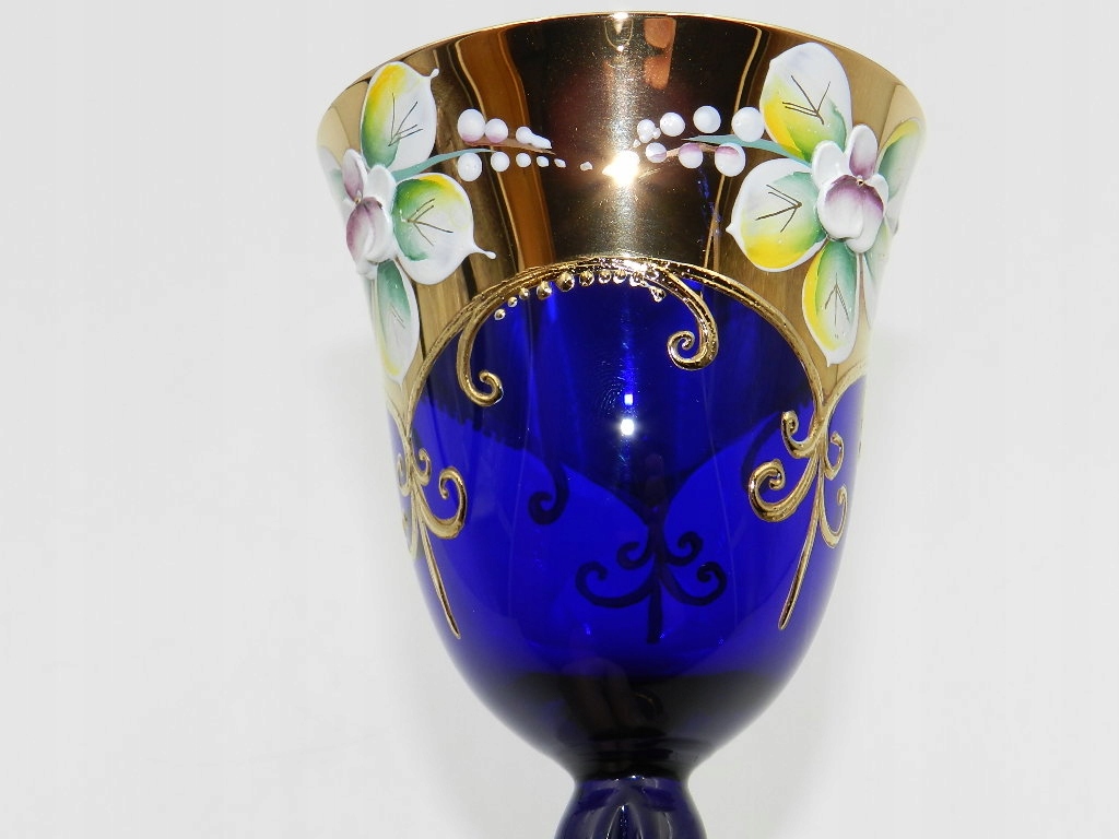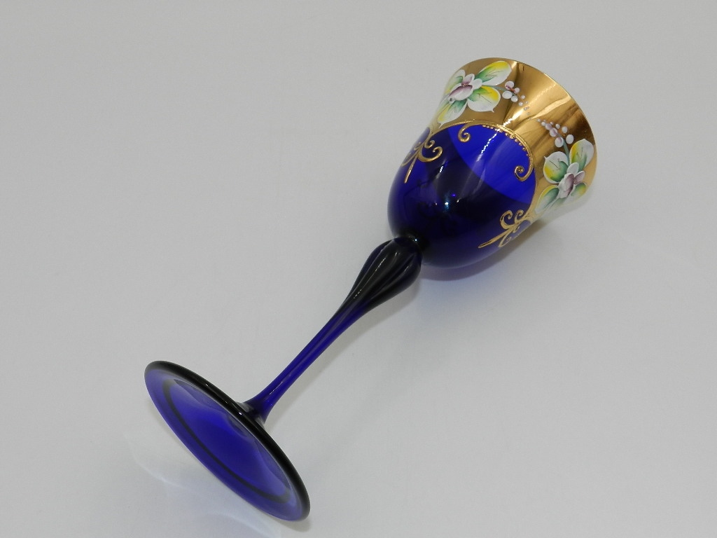 Ми раді представити вам чудовий кобальтово-блакитний, красиво та багато декорований кубок для вина Bohemia Czech Republic.