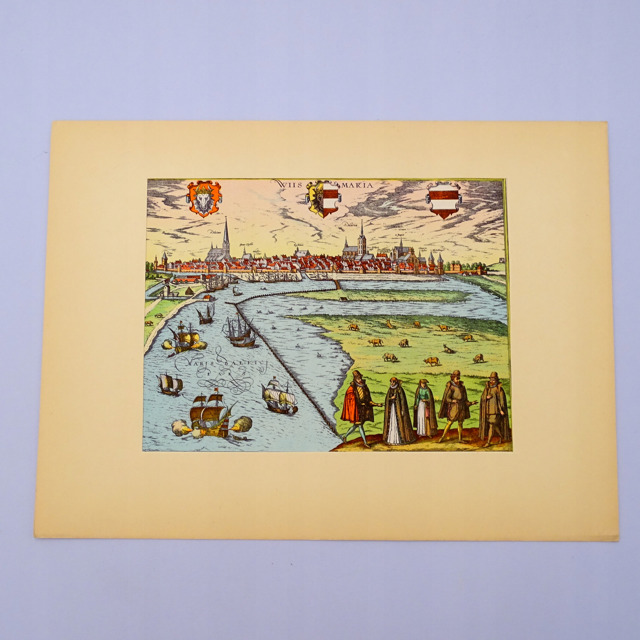 Прекрасний барвистий вид на старе місто, опублікований у Німеччині в середині 20-го століття за прикладом графіки епохи Відродження.