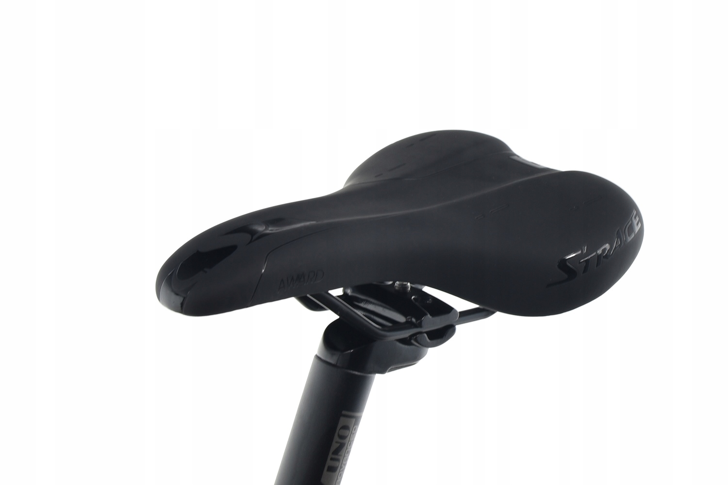 Зручне сідло DDK, прикріплене до алюмінієвого підсідельного штиря Kalloy Uno за допомогою вбудованої дужки. Він дозволяє встановити кут нахилу та положення сідла щодо керма.