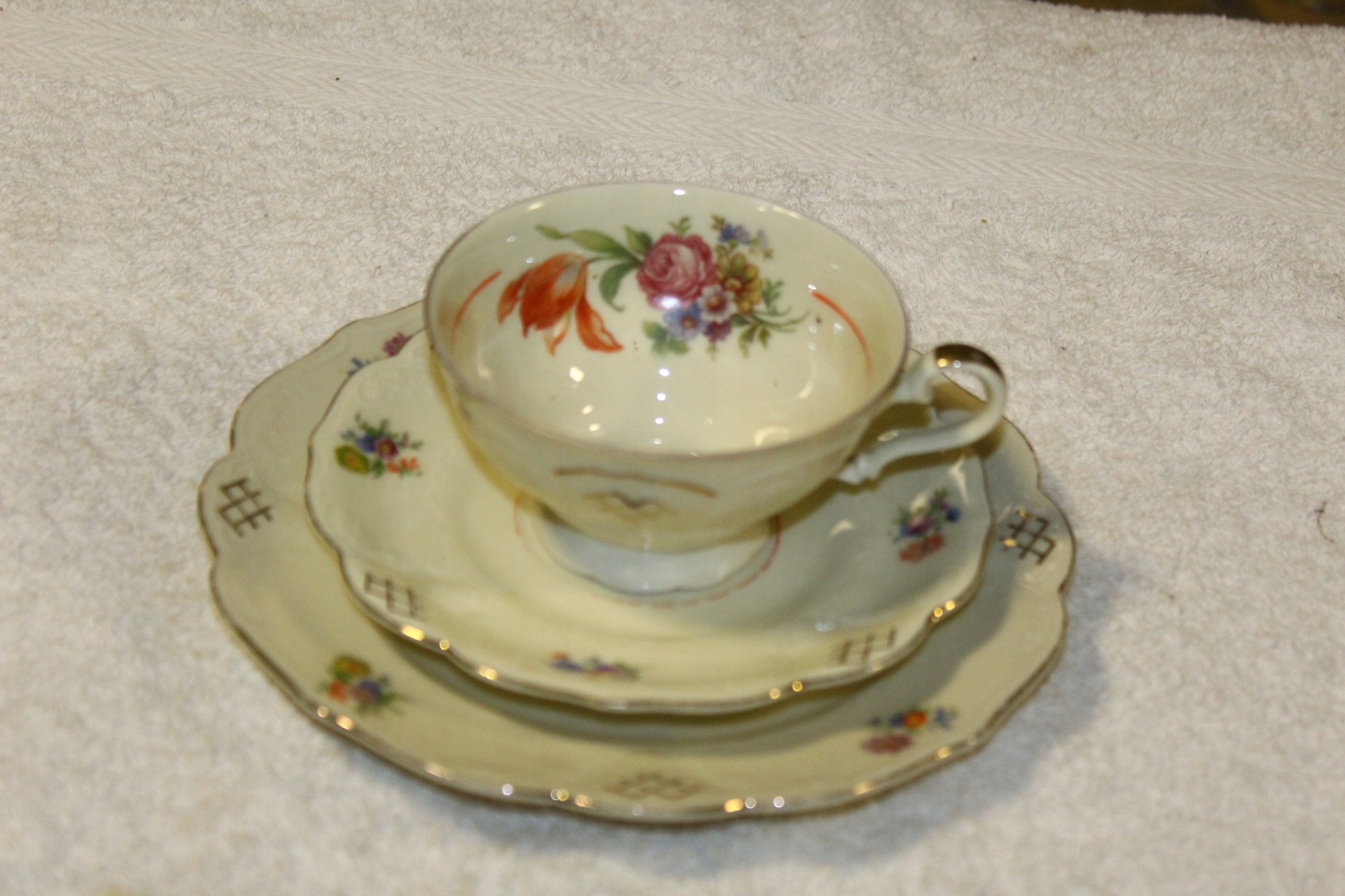Набір для сніданку, діаметр центру 10 см, висота 5,5 см, діаметр тарілок 19 і 15 см, вага 0,44 кг, без пошкоджень, незначні сліди використання.