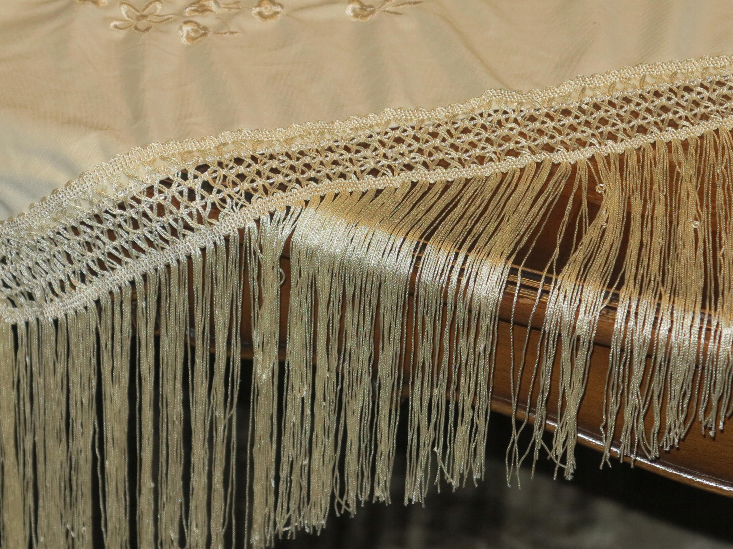Предмет аукціону надзвичайно красивий шарф або настінна скатертина з розпущеною довгою бахромою та красивою вишивкою. Б/у, в чудовому стані. Щиро рекомендую, це надзвичайно гарна річ.