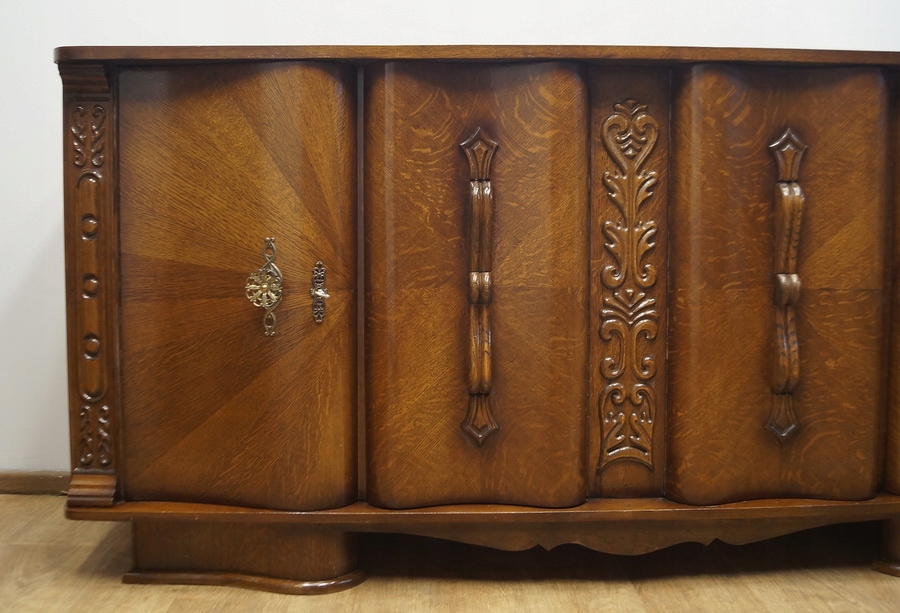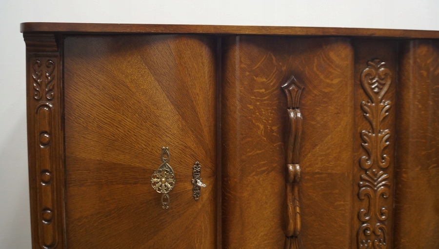 Предмет меблів має чотири дверцята, прикрашені гарним різьбленням, двері фантастичної форми. Цей комод унікальний та винятковий.