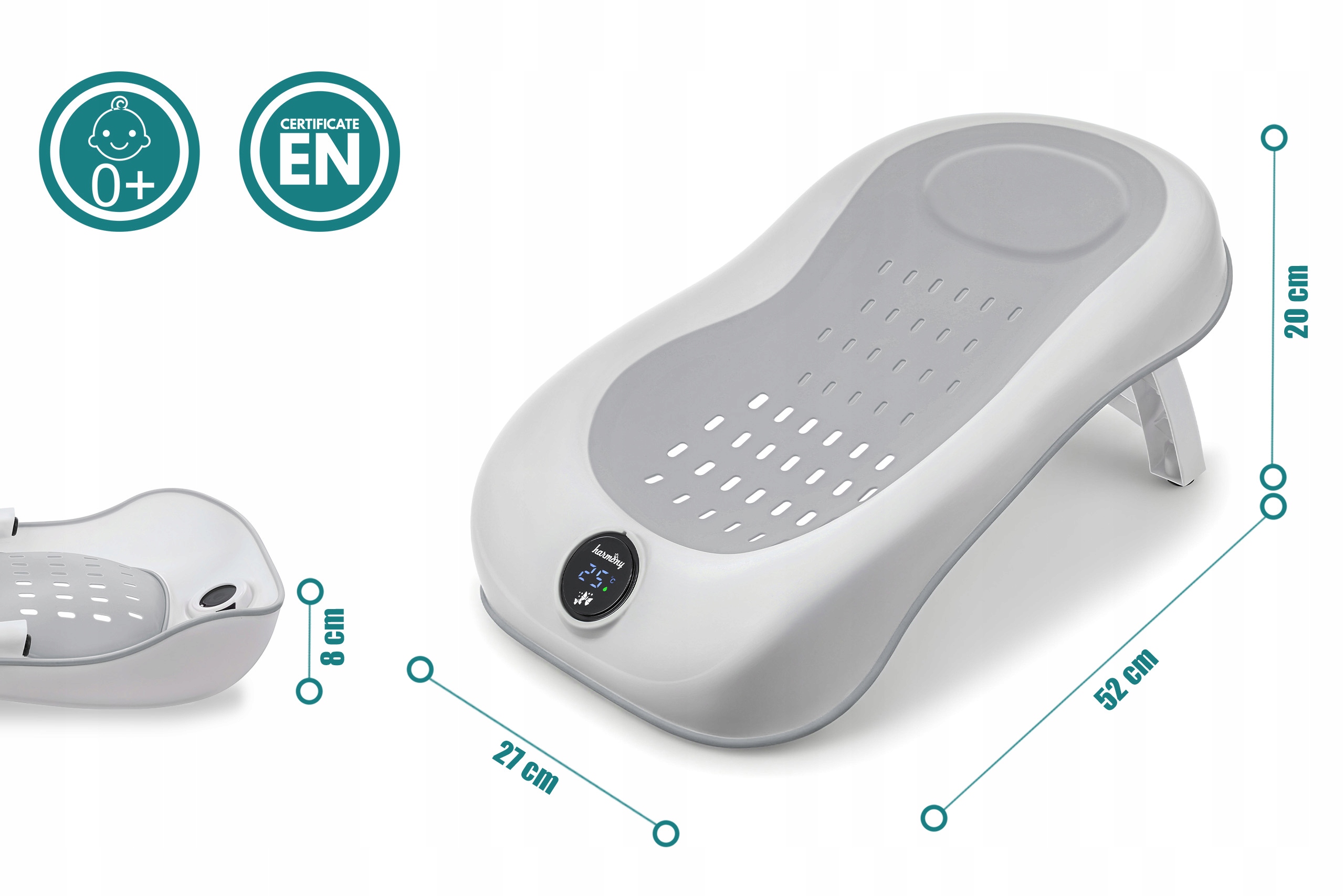 ЧУНЧЕР, ВСТАВКА ДЛЯ ВАННИ, СИДІННЯ ДЛЯ ВАННИ З ТЕРМОМЕТРОМ HARMONY, СІРИЙ