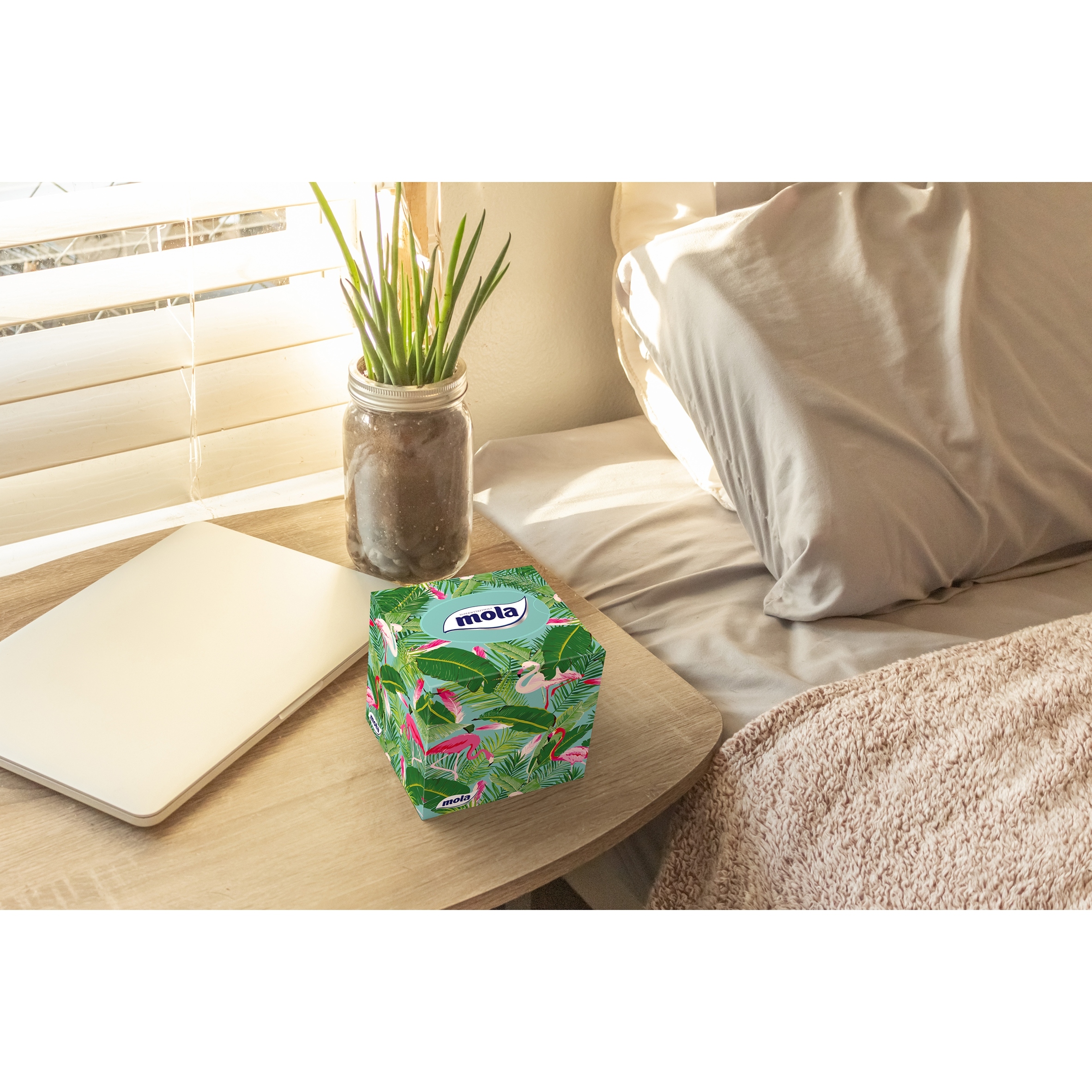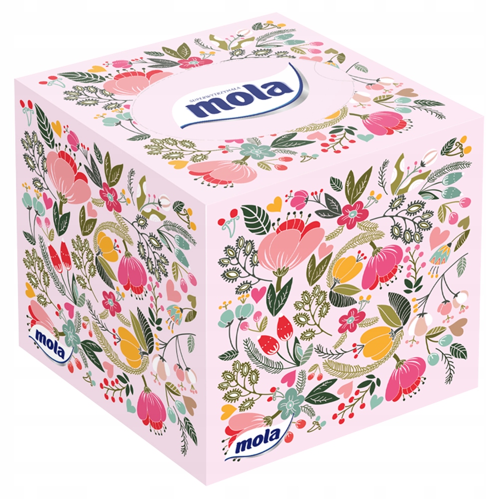 Серветки Mola Cubic — це м’які 3-шарові косметичні серветки з чистої целюлози. Їх стильна сучасна упаковка буде красиво виглядати у вашій квартирі. На вибір аж 6 візерунків: і квіткові мотиви, і кумедні кошенята, і наймодніші фламінго, і солодкі пончики.