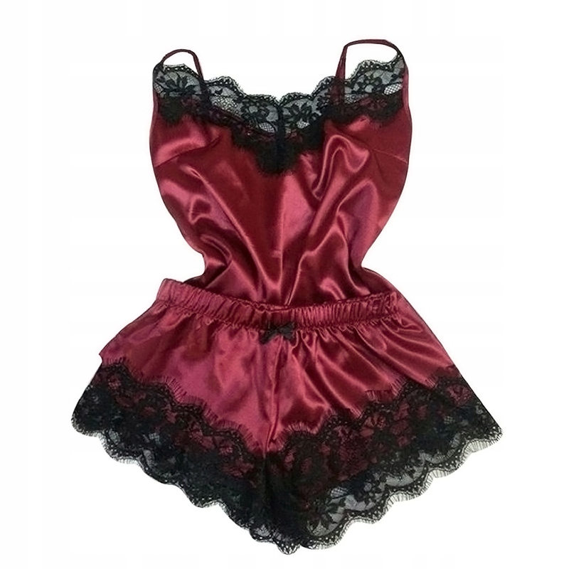 СЕНСОРНА ПІЖАМА З ДВІХ ЧАСТИН, ПРИКРАШЕНА ЧОРНИМ МЕРЕЖИВОМ