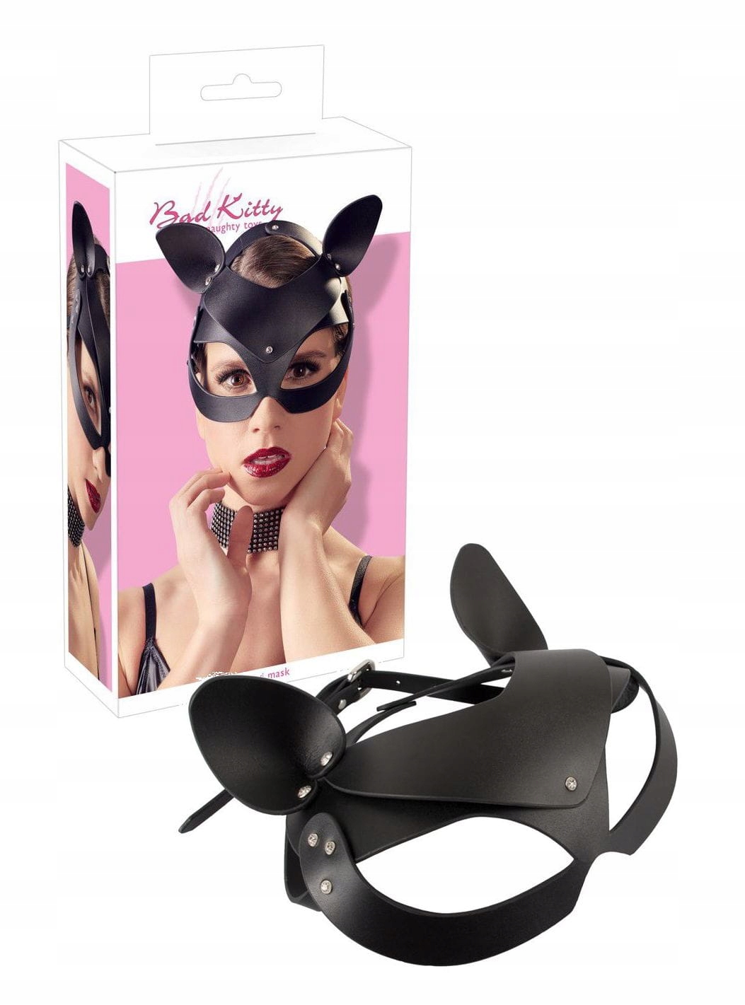 Наголовна маска з чуттєвого шкірозамінника з кокетливо стирчать котячими вушками і прикрашена дрібними блискучими заклепками.