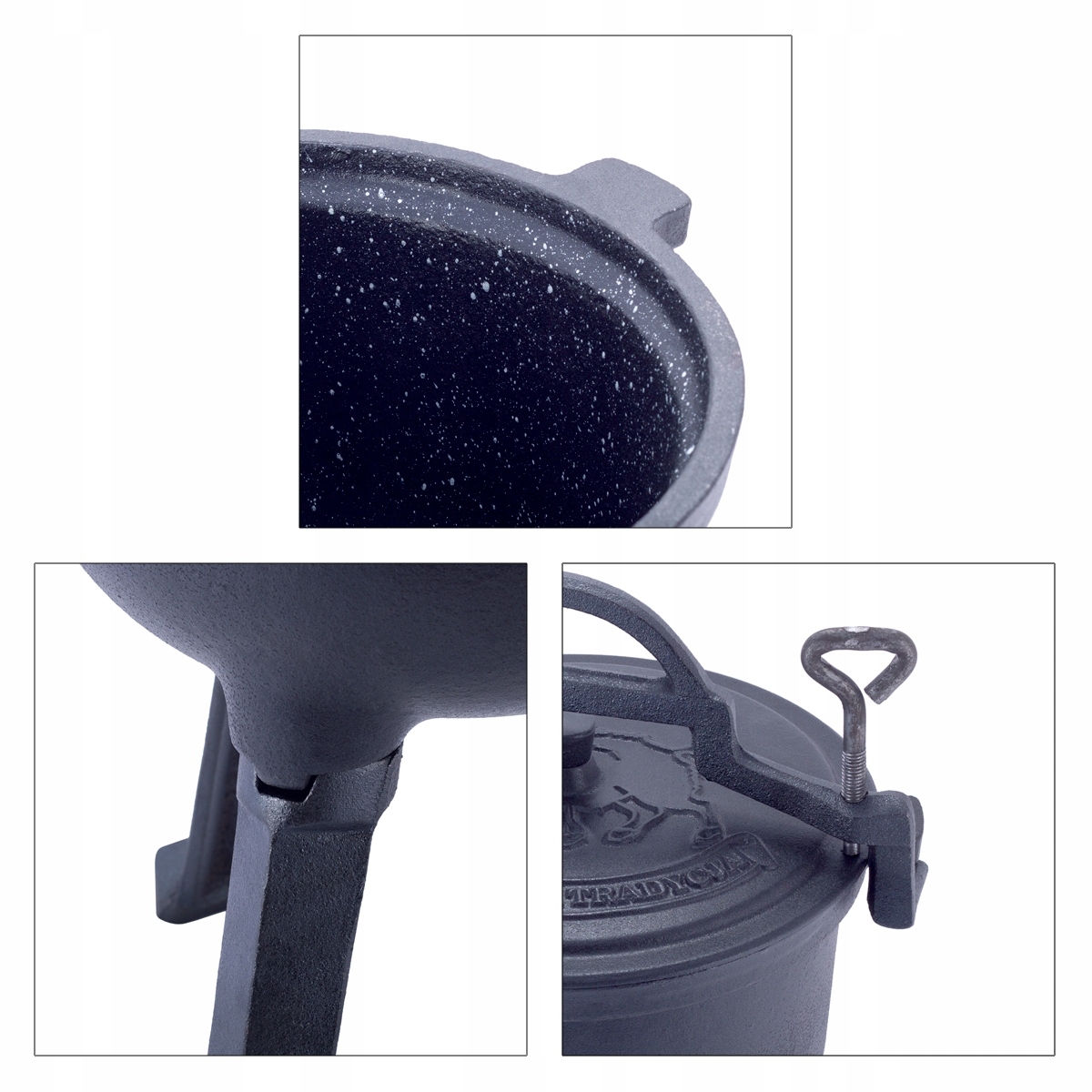 Виріб має знімні ніжки, тому казан можна поставити в камін або прямо в камін. Завдяки тисненню на обкладинці ви можете бути впевнені, що купуєте оригінальний і безпечний продукт.