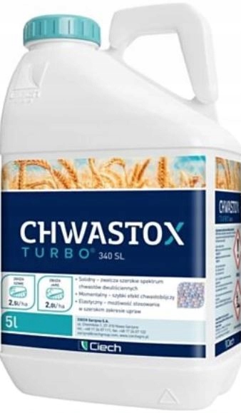 CHWASTOX TURBO 340 SL – гербіцид у формі концентрату для приготування водного розчину, що застосовується позакоренево, призначений для післясходового знищення однорічних дводольних бур’янів.