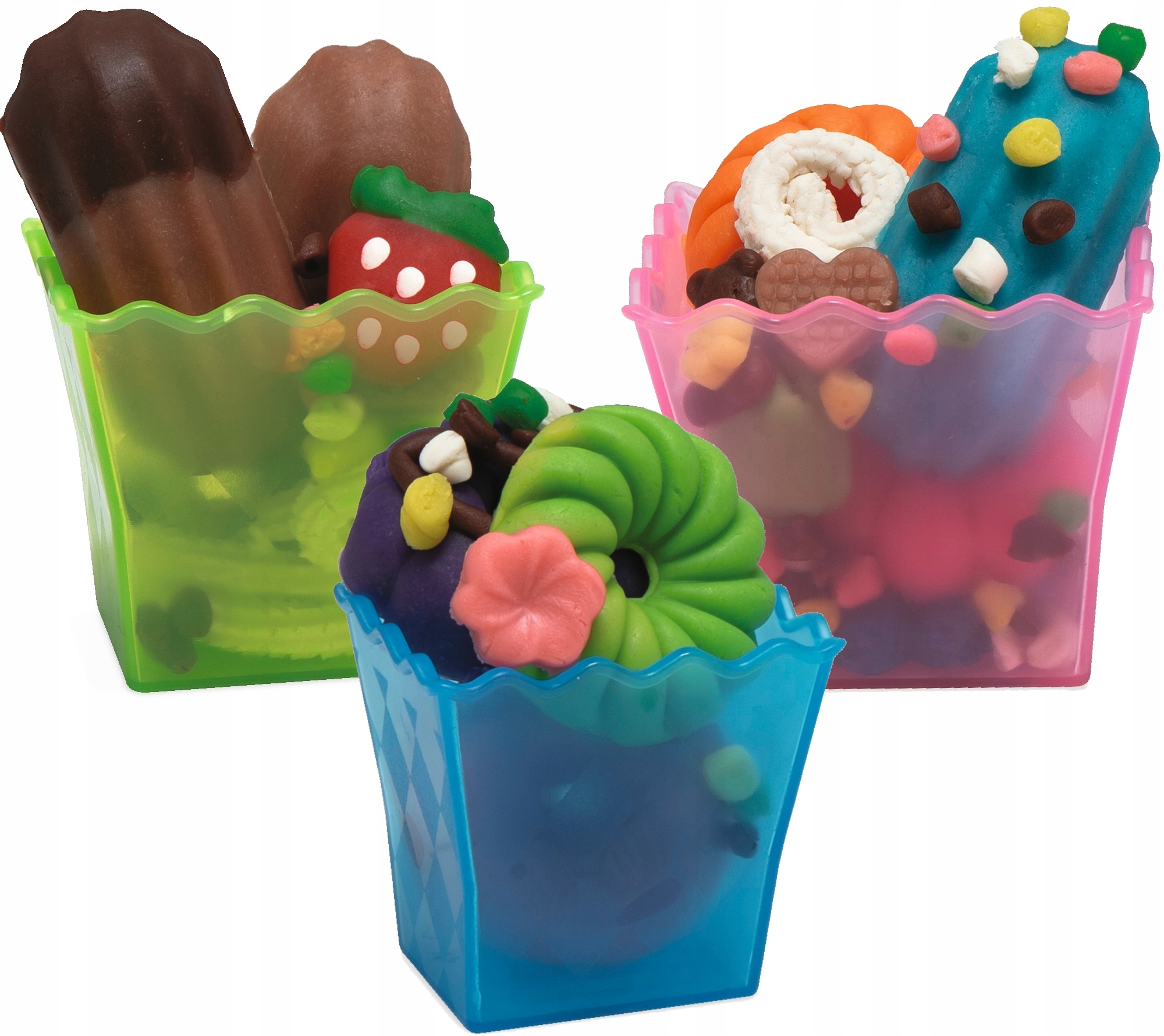 CIASTOLINA KOLOROWE DESERY SŁODYCZE ZESTAW MASA PLASTYCZNA FOREMKI AKC.