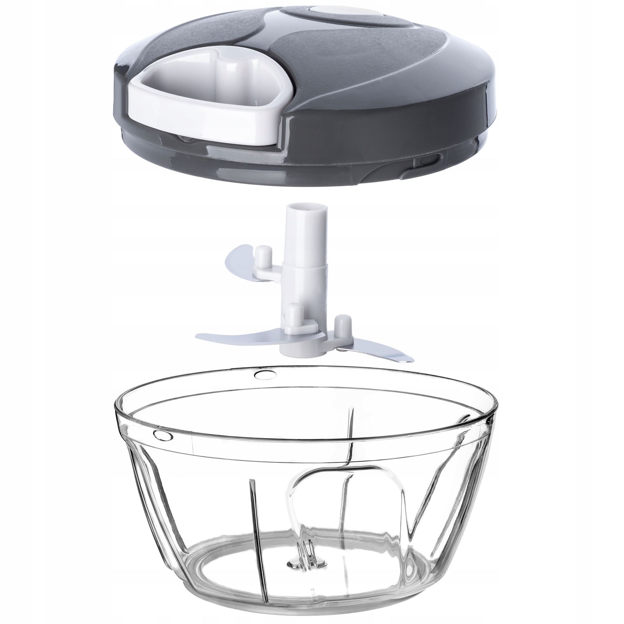 Щоб нарізати продукти, просто помістіть інгредієнти та потягніть за ручку. ручку на нитці, і обертові леза миттєво розчавлять їх.