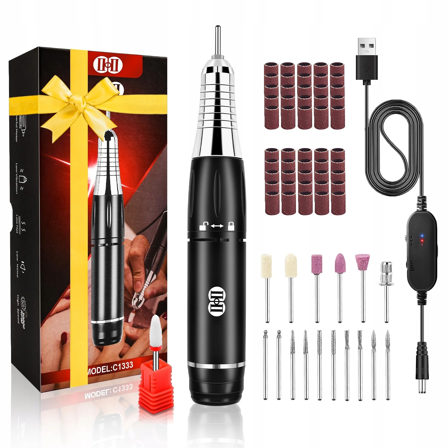 appurer for acrylic nail: ✔ Construction made of full metal & portable & portable size & lightweight (100g) ✔-in-shape feather-shaped for a convenient grip ✔ Mocked engine made of pure copper-cicha and low-school, but at high torque and high speed ✔ handle ✔ VELNATE SPEED REGULATION (0-30000 rpm. RIGHT/LEFT RIGHT CHARACTERS CHARACTERS USB charging ▶ Everything carefully designed to provide our clients з кращим досвідом з нігтями.