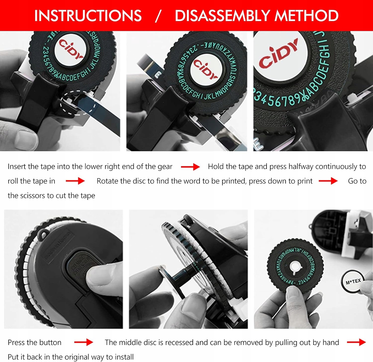 • Система міток Click: друкарська машинка цього набору оснащена інтуїтивно зрозумілою системою міток, яка допоможе вам ефективно друкувати літери та цифри, просто натисніть на них протягом кількох секунд. Спочатку виберіть потрібну букву, цифру, а потім ножиці, щоб відрізати стрічку.