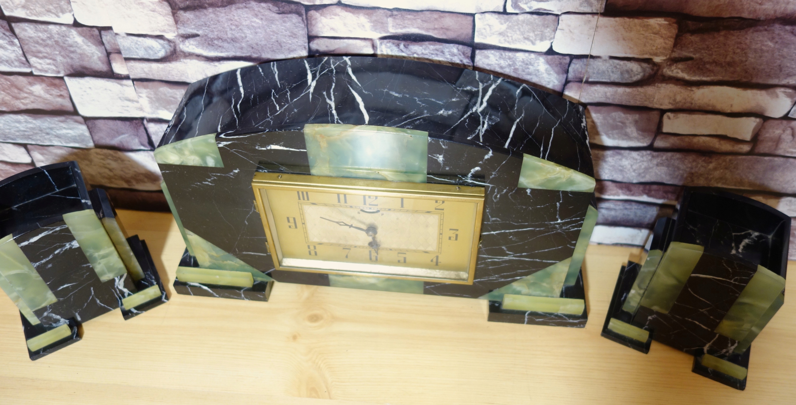 Ciekawy ,duży ,zegar kominkowy Art Deco marmur plus przystawki