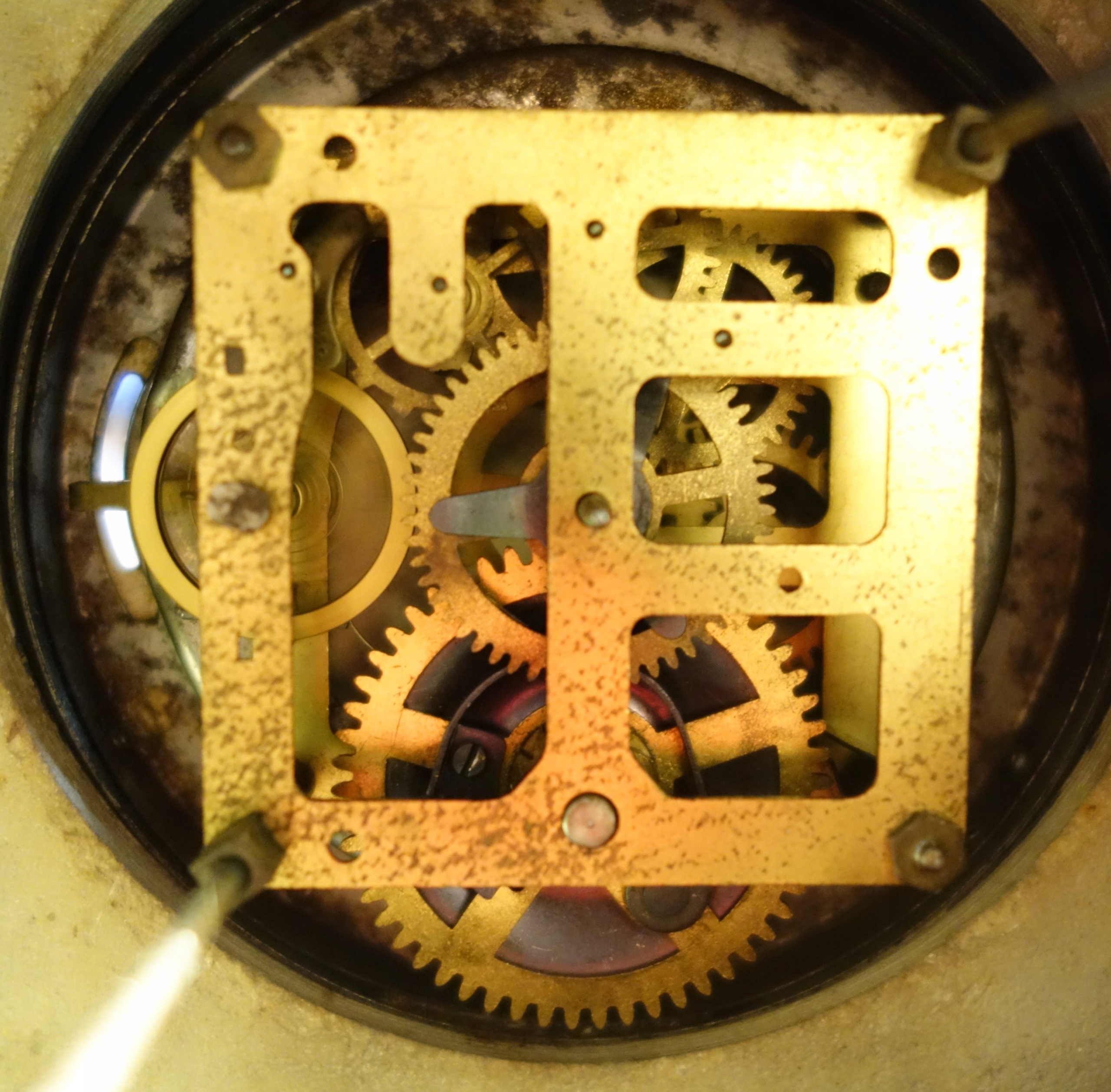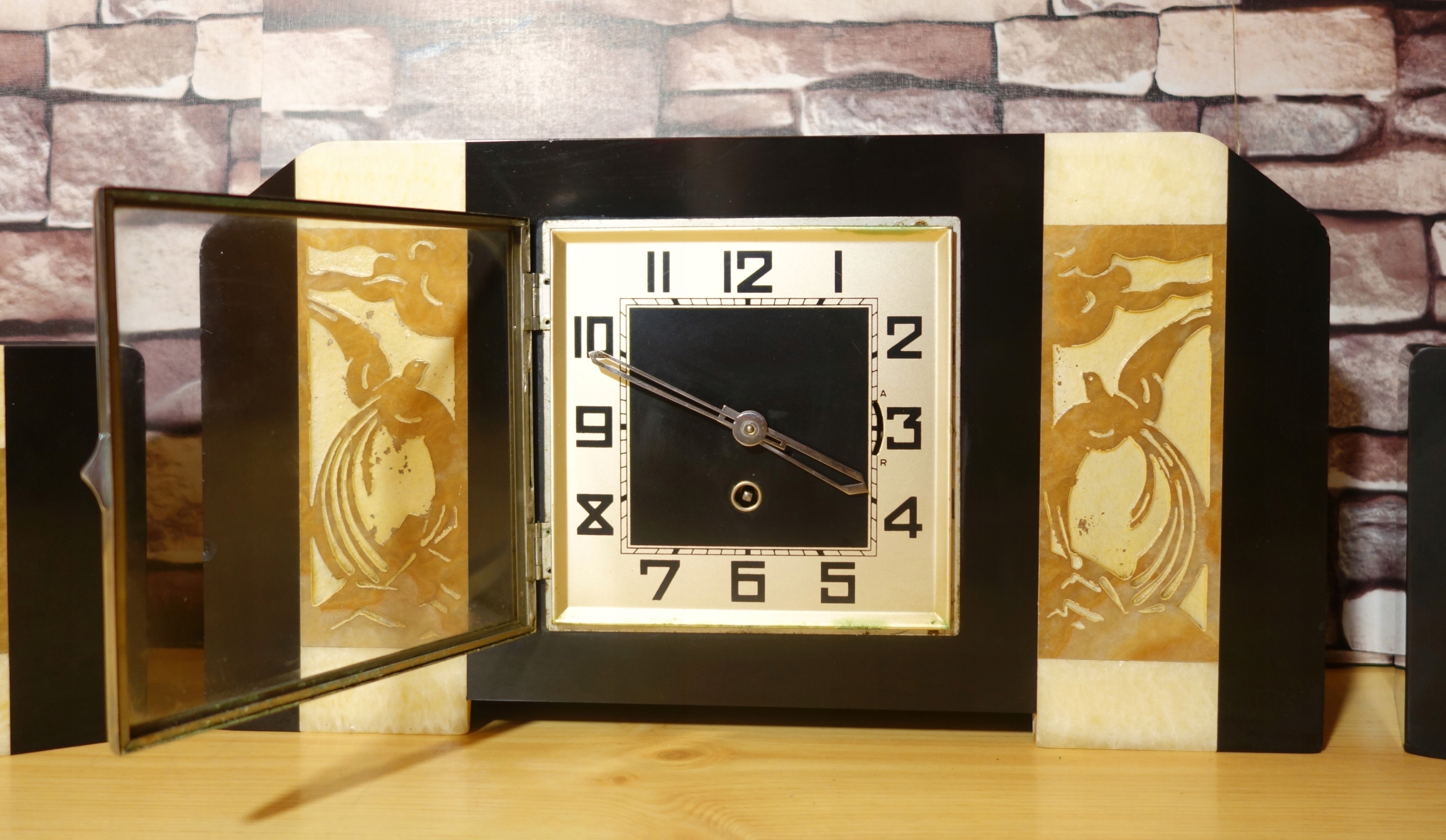 Рідкісний великий камінний годинник у стилі ар-деко. ,з механічним приводом, балансувальний механізм