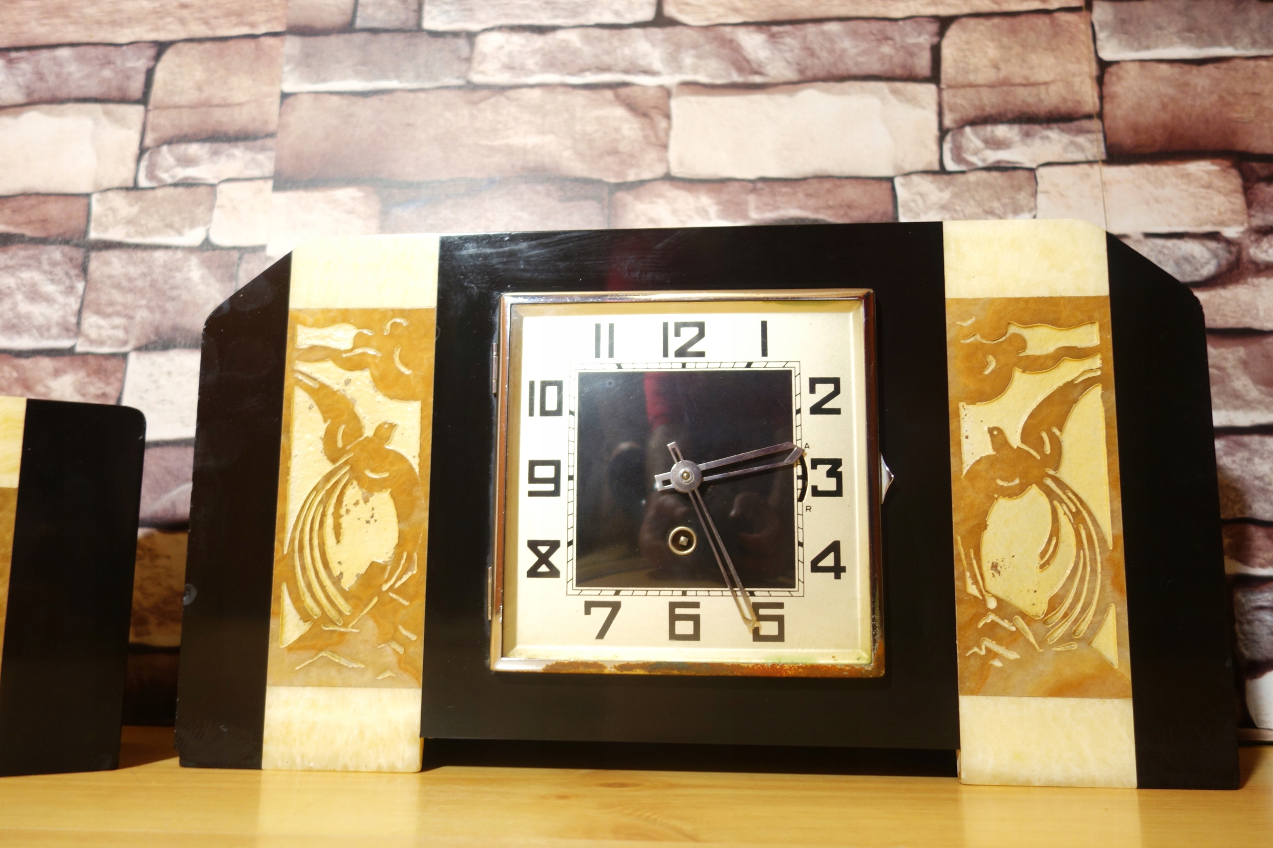 Ciekawy ,duży ,zegar kominkowy Art Deco marmur plus przystawki