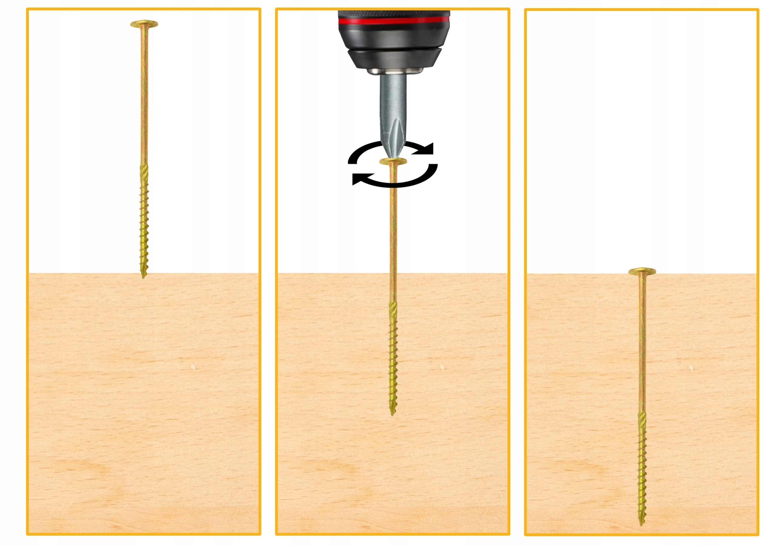 Додаткові прокрутки на шип дозволяють швидше "ловити" деревину на першому етапі гвинта. Ця перевага особливо важлива у випадку з'єднань, де натиснути гвинт важко. подвійний потік змушує нас досягти одного і того ж ефекту з значно меншим тиском.