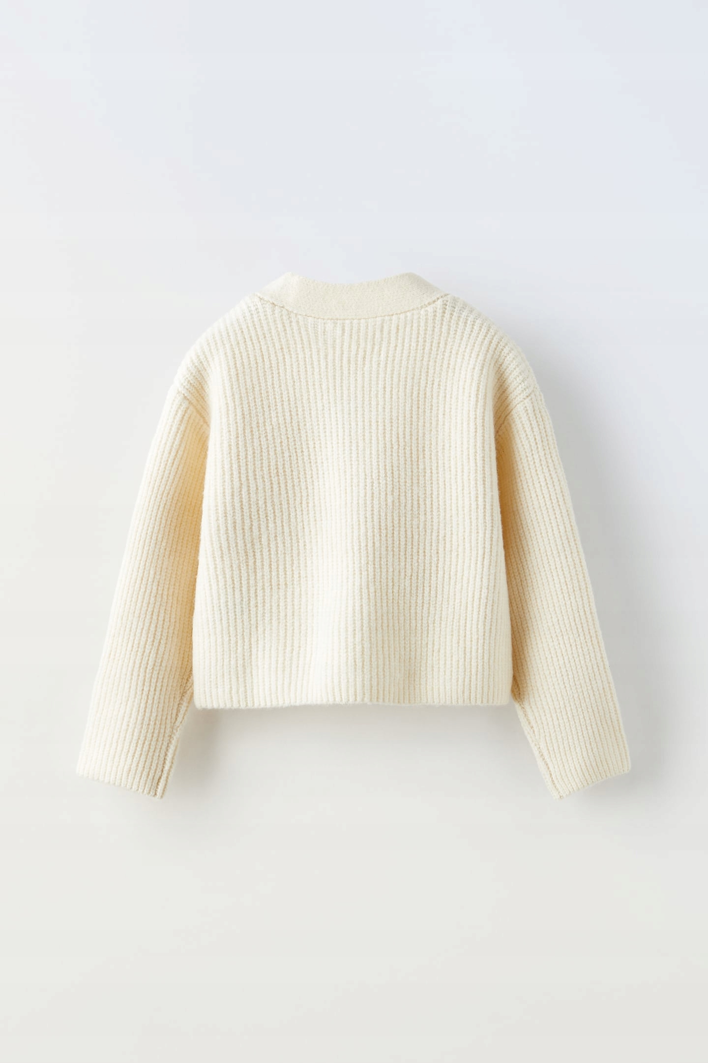 CIEPŁY KARDIGAN Z PRĄŻKOWANEJ DZIANINY DLA DZIEWCZYNKI 152