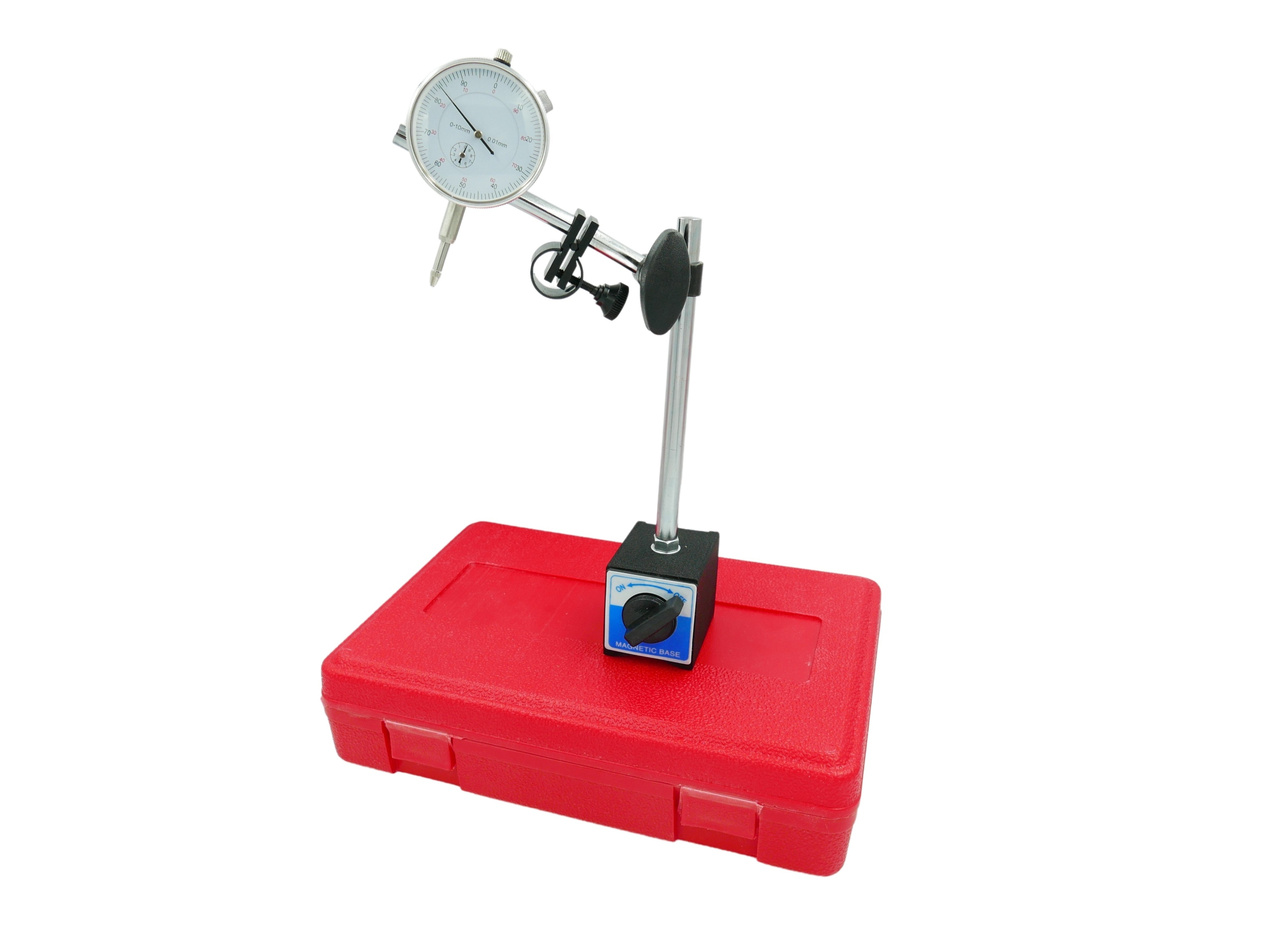 Вимірювальний набір для перевірки биття в кейсі для транспортування та зберігання: Ціферблатний покажчик + Магнітна база з прецизійністю