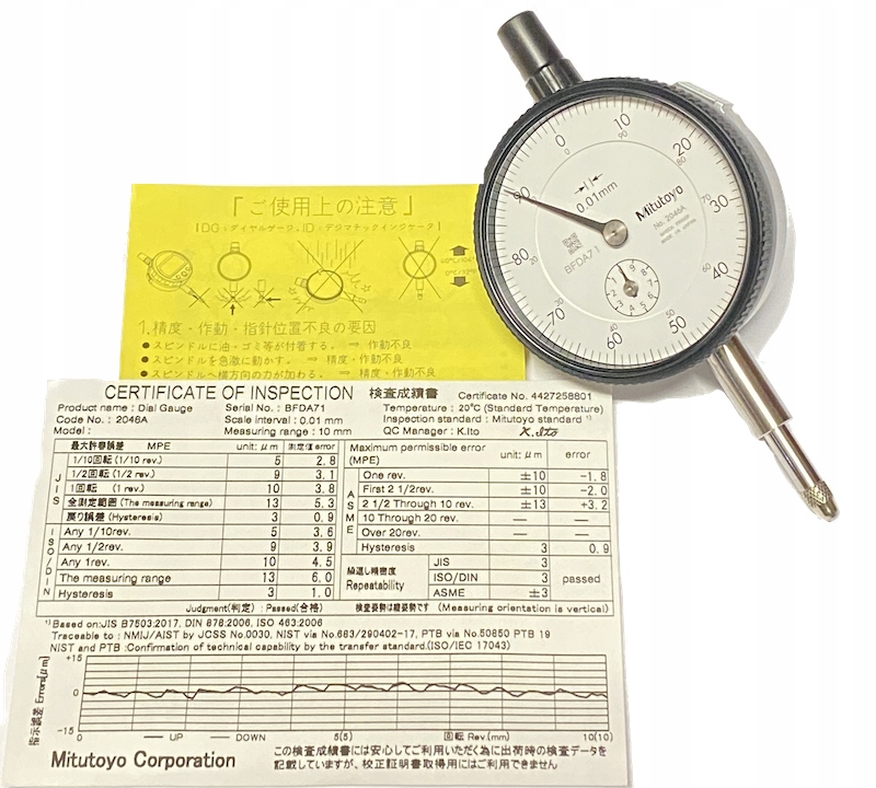 - Сертифікат, виданий лабораторією Mitutoyo