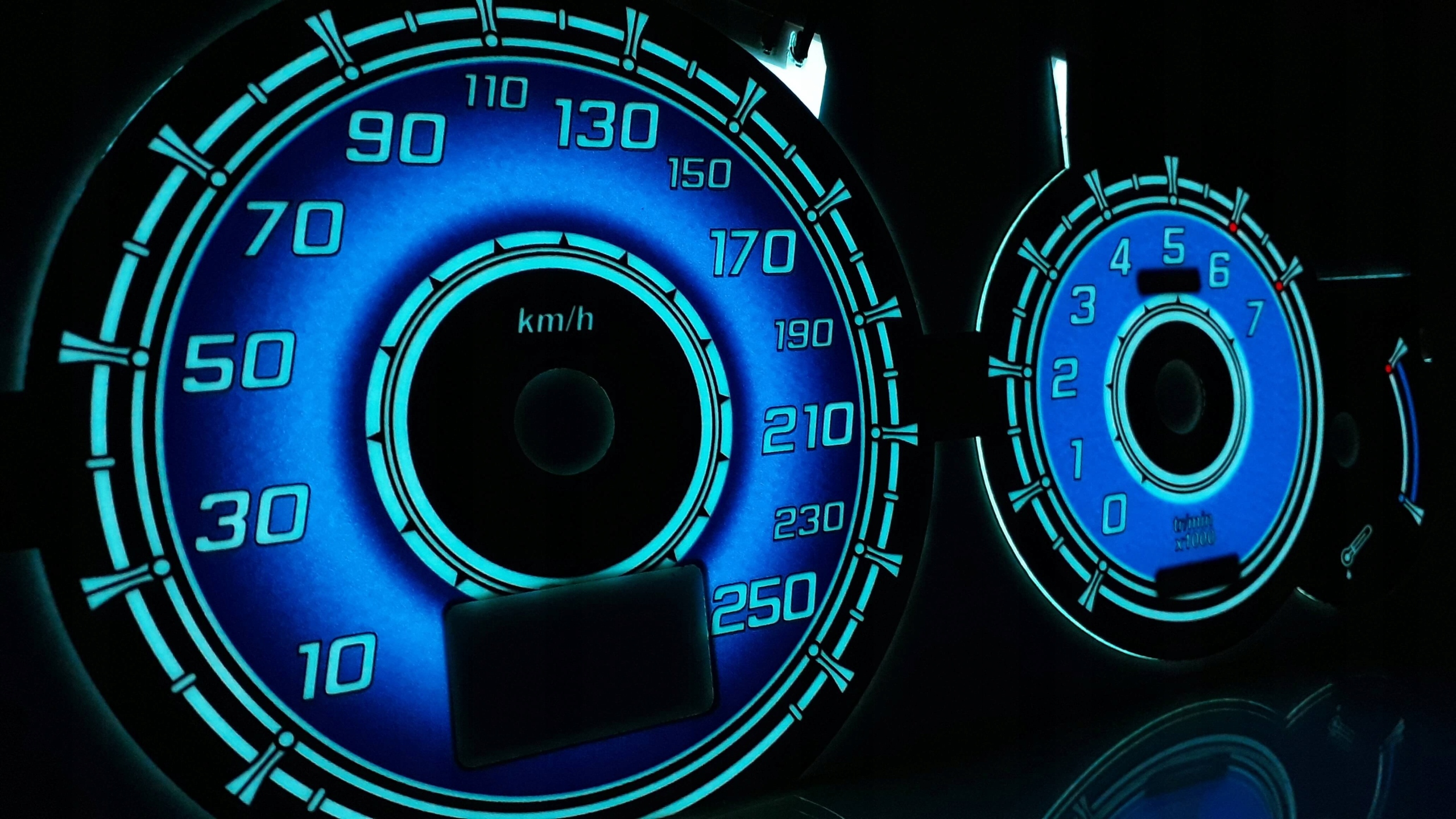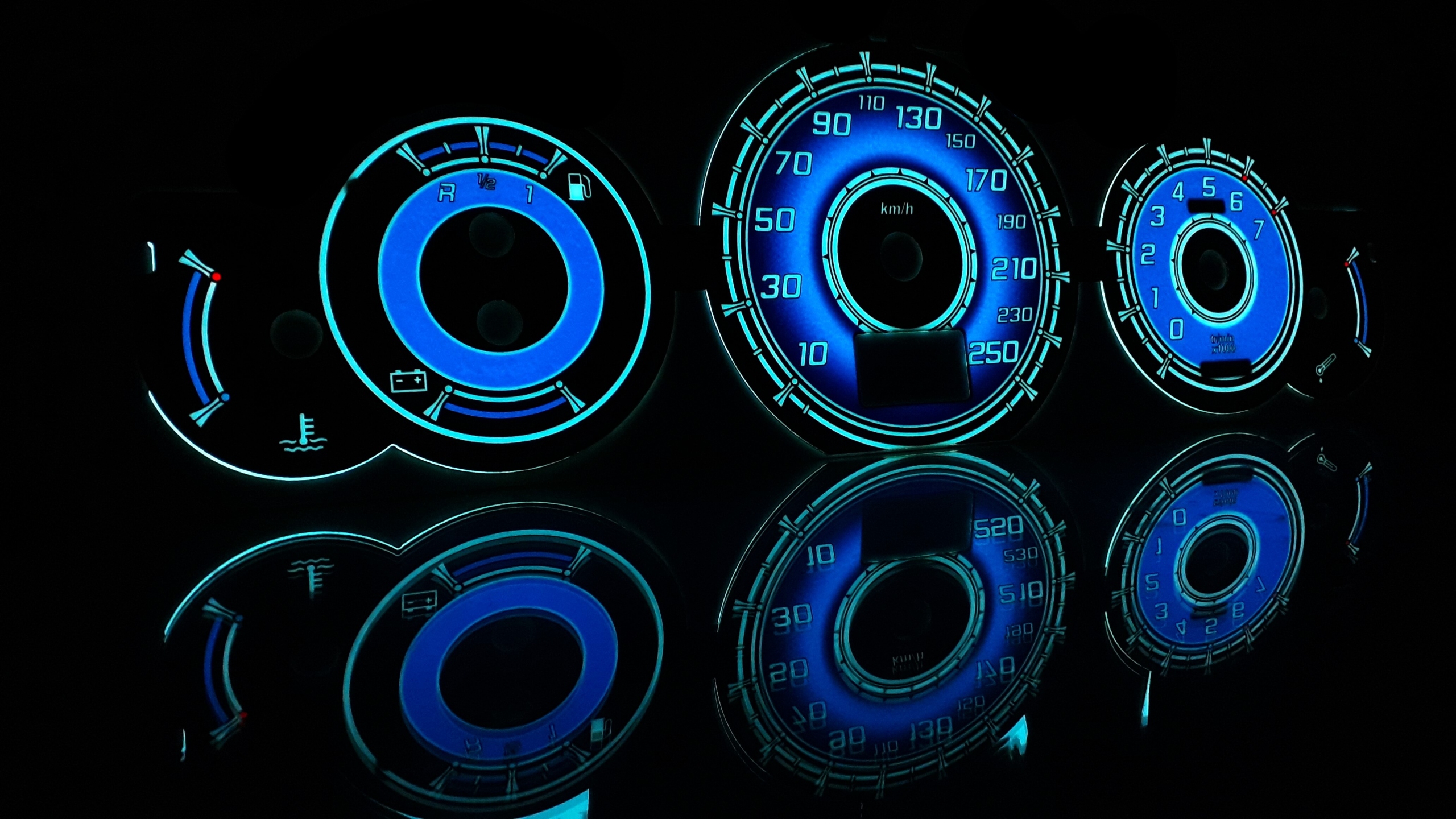 Наші диски зроблять ваш автомобіль ще кращим, а одометр придбає новий вигляд. У дисках INDIGLO освітлювальним елементом є сама фольга INDIGLO товщиною всього 0,5 мм, яка збуджується високою напругою з інвертора. Фольга рівномірно світиться по всій поверхні (а не плямами, як світлодіодне освітлення). Це не світлодіодне підсвічування знизу або зверху з фольги або світлопроникного оргскла, немає необхідності встановлювати додаткові діоди та лампочки. Побачте на власні очі дивовижний колір плазмового світла, суперконтраст і унікальні кольори.