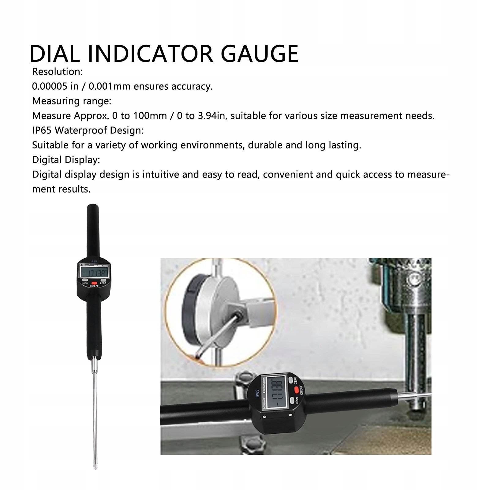 Роздільна здатність циферблатного індикатора 0,001 мм Діапазон від 0 до 100 мм Цифровий дисплей Водонепроникний циферблатний індикатор для промисловості