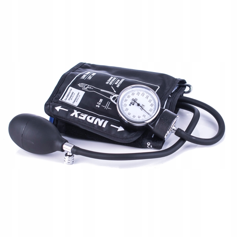 Тонометр має великий чіткий манометр із діапазоном від 0 до 300 мм рт.ст. Він оснащений латексною помпою з хромованим випускним клапаном і одноголовим стетоскопом.