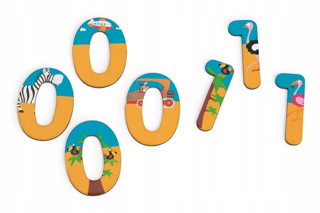 • набір із 60 шт. магнітні цифри та математичні знаки, виготовлені з картону з мотивами сафарі