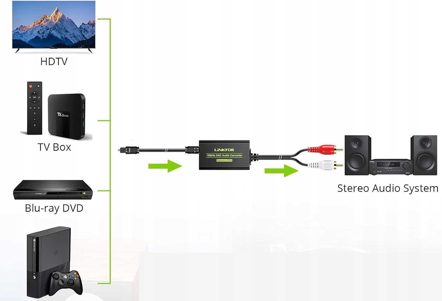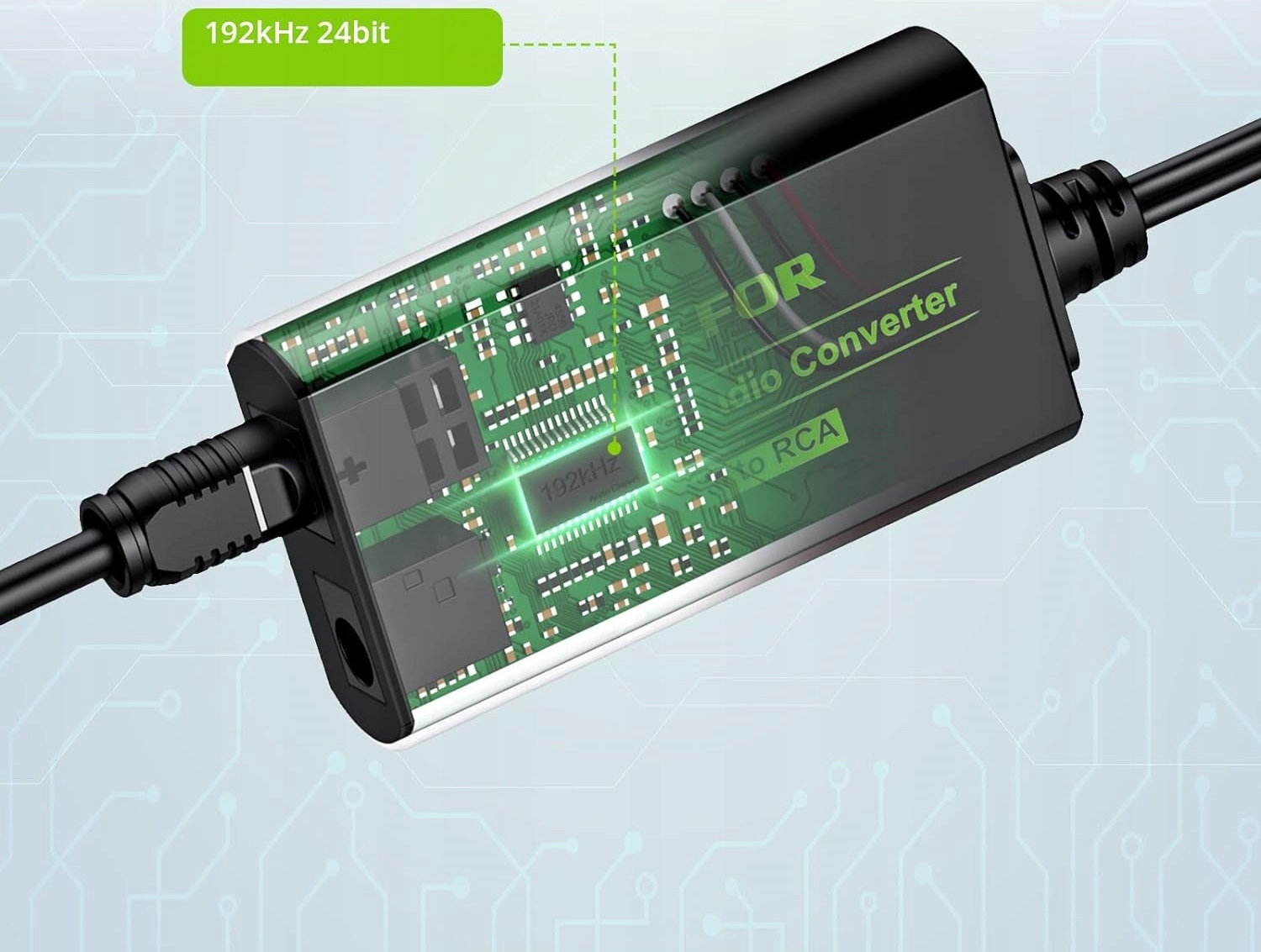 - 【 Plug and Play】 Ідеально працює з HDTV, приставкою, програвачами DVD/Blu-Ray та ігровими консолями. Живлення від USB 5V 1A. Підтримує формат цифрового аудіо PCM або LPCM. (ПРИМІТКА: несумісний із 5.1-канальним сигналом, таким як Dolby AC3, DTS)