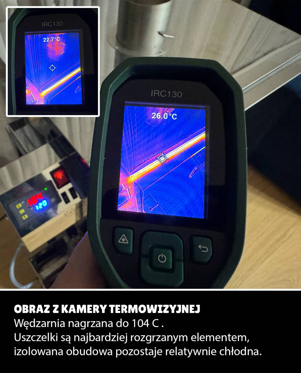 ✅ Фотографії з тепловізора показують ефективність утеплення. Коптильня працює близько 20 хвилин і нагрівається до 100C. Фотографії зроблені при кімнатній температурі.