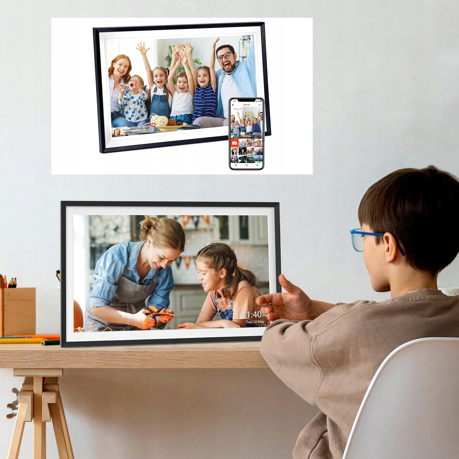 - Ця цифрова фоторамка Wi-Fi використовує переваги миттєвого обміну, щоб записувати спогади, тож ви можете ділитися останніми хорошими моментами з улюбленими людьми будь-коли та будь-де.
