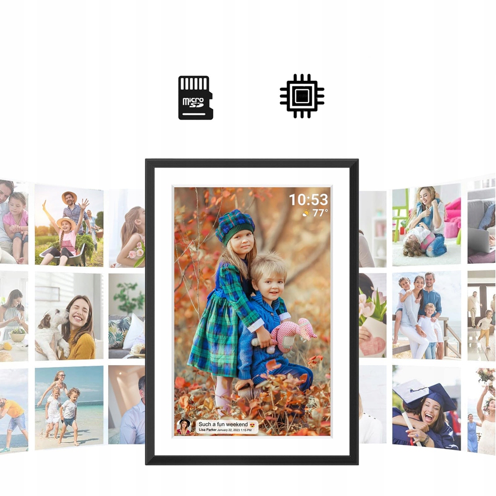 - із фотографіями бездротового обміну можна надіслати в кадр за допомогою програми Frameo та відображення за кілька секунд, з максимум 512 користувачів, підключених до кожного кадру.
