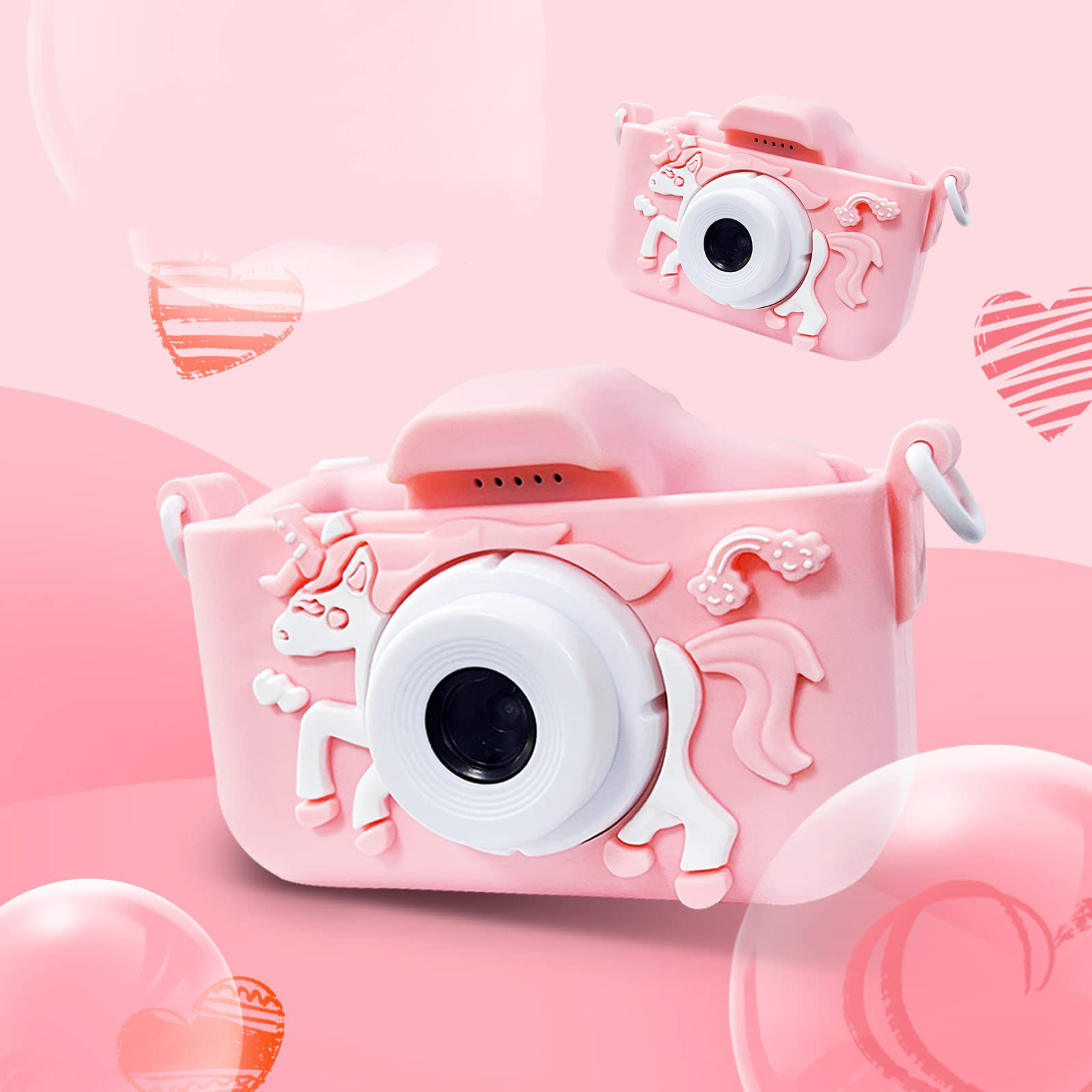 Невеликий розмір, підходить для маленьких дитячих ручок; Завдяки подвійним об’єктивам на передній і задній панелях дитяча цифрова камера може робити максимум 40 МБ чітких фотографій і записувати відео високої чіткості 1080P. Діти можуть використовувати цю цифрову камеру, щоб вільно знімати чудові повсякденні моменти.