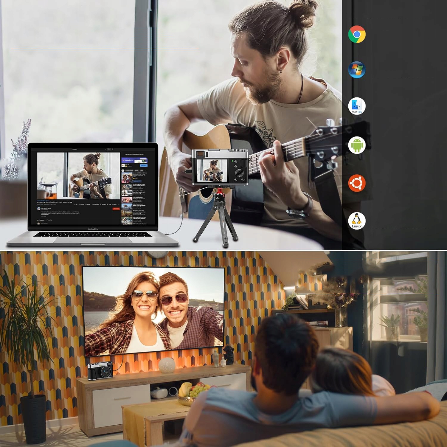 Ця камера для відеоблогів підтримує роздільну здатність відео 4K 60 кадрів/с Ultra HD і роздільну здатність зображення 48 Мп. За допомогою цієї компактної камери ви можете в будь-який час зафіксувати незабутні моменти та перетворити кожне фото на дорогоцінний сувенір. (Ця цифрова камера 4K містить карту пам’яті 32G, додаткова покупка не потрібна.)