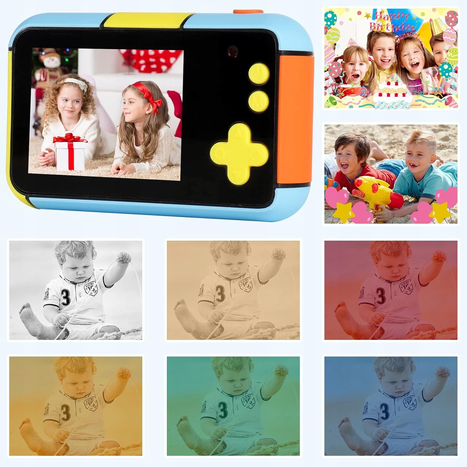 На основі оригінального захоплення фотографій цифровий камера для дітей Юнлоне має більше функцій, таких як відео-запис, відтворення, фотографування серій 3 с, 5 с 10 с, самоспорідер (10 с, 5с, 3 с), 4-кратні масштабування, 7 фільтрів та 30 чарівних кадрів з картриджів. Нехай діти відриваються від ігор до мобільних телефонів та комп’ютерів та створюють смішні фотографії.