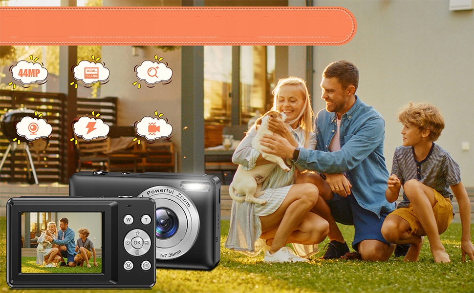 📸ten Компактна камера підтримує 16-кратний цифровий масштаб, а фотографії та відео можуть бути збільшені та зменшені, переміщуючи кнопку W/T. Вбудована лампа -начинка допомагає робити фотографії високої якості в темряві. Розетка зовнішнього штатива дозволяє підключити штатив, щоб зробити стабільні фотографії.