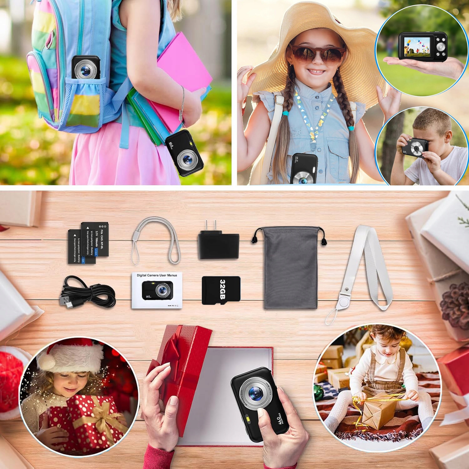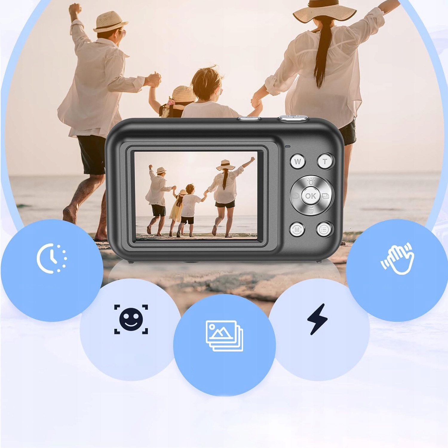 📷Багатофункціональна камера: камера 1080p має потужне 16-кратне цифрове збільшення. Цифрова камера підтримує функцію стабілізації тремтіння, селфі, розпізнавання обличчя, серійну зйомку, 20 фільтрів, сенсор CMOS і заповнює світло. Усі функції забезпечують кращий досвід зйомки та прості у використанні для дітей, хлопчиків, дівчаток, студентів, початківців і людей похилого віку.