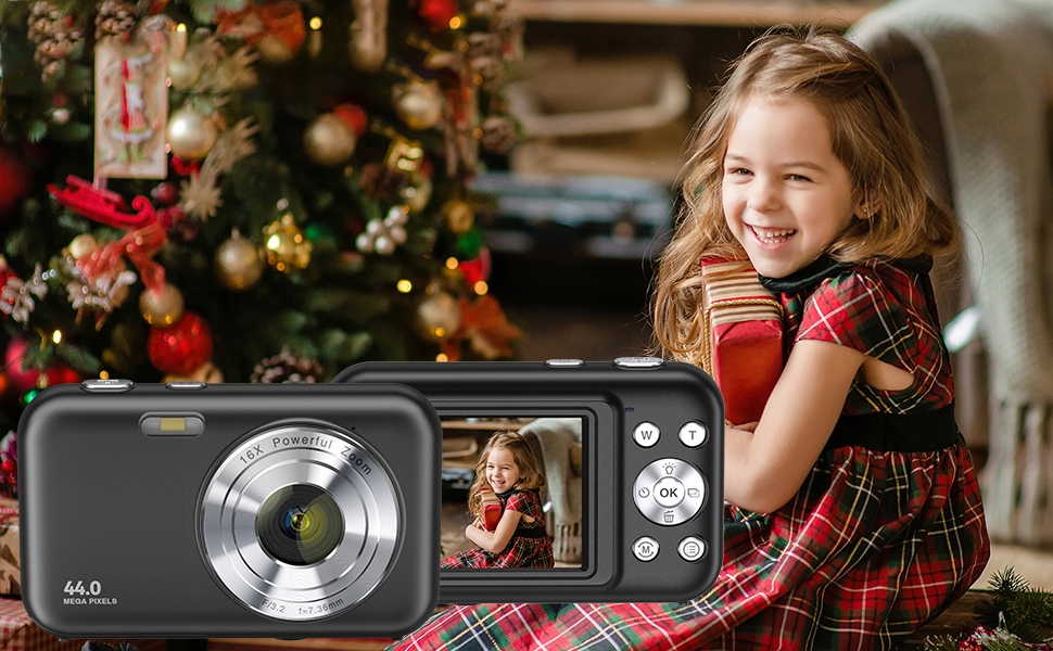📷Камера з роздільною здатністю FHD 1080P і 44 МП: ця цифрова камера має роздільну здатність відео Ultra HD 1080P і роздільну здатність зображення 44 МП, щоб зафіксувати найзахопливіші моменти з кращою якістю зображення або відео. Діти та студенти можуть знімати веселі моменти з друзями та членами родини за допомогою камери.
