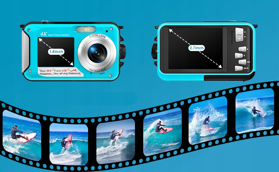 - Ця водонепроникна цифрова камера оснащена з 2,7-дюймовим дисплеєм ззаду та 1,8-дюймовим дисплеєм для селфі на передній частині, тому ваша родина впишеться.
