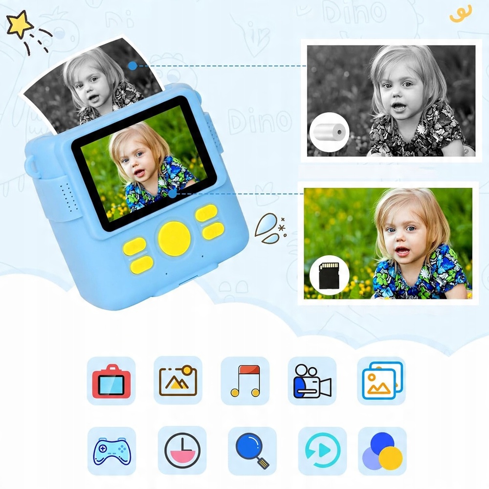 - Ця камера для дітей з можливістю негайного друку, великий екран з діагональною 2,4-дюймовою, відео 1080p, 16-кратного цифрового масштабування, спалаху, безперервних фотографій, ігор, фільтрів, mas.