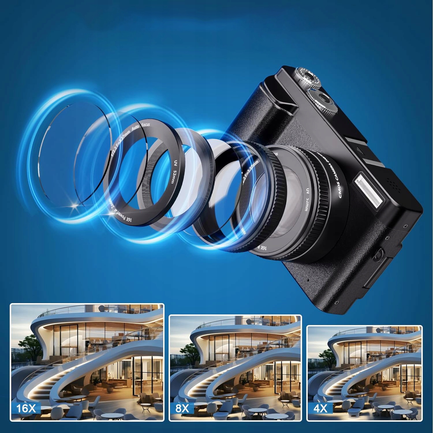 - Ви можете використовувати цю цифрову камеру для створення відео 4K для YouTube. Ця камера 4K може знімати роздільну здатність 48 МП і підтримує 16-кратне цифрове масштабування, допомагаючи вам знімати та записувати найзахопливіші та незабутні моменти у вигляді високоякісних фотографій і відео, ідеальних для використання в приміщенні або на вулиці.