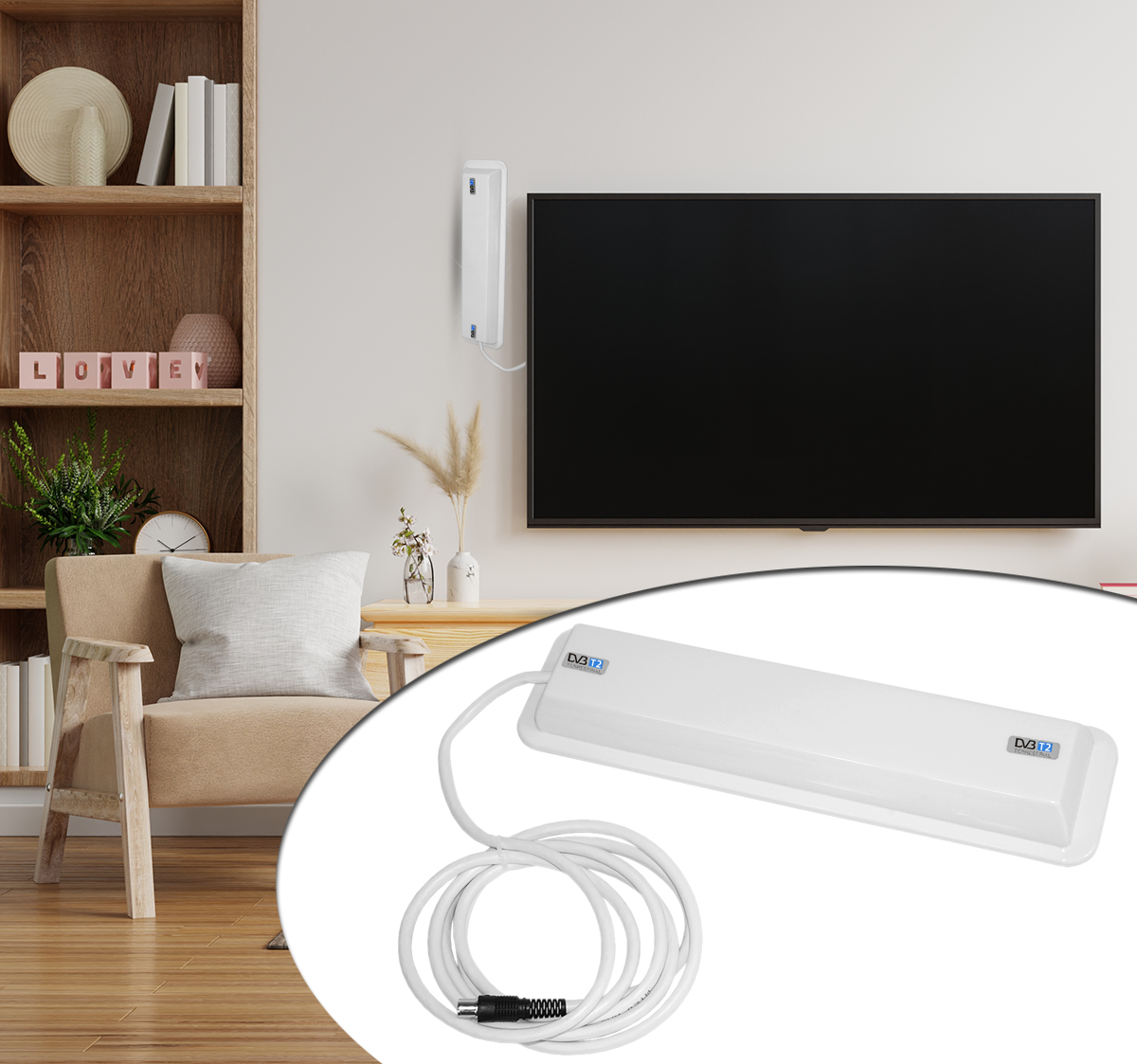 ЦИФРОВА ВНУТРІШНЯ АНТЕНА DVB-T DVB-T2 HEVC УНІВЕРСАЛЬНА міні + 2м КАБЕЛЬ