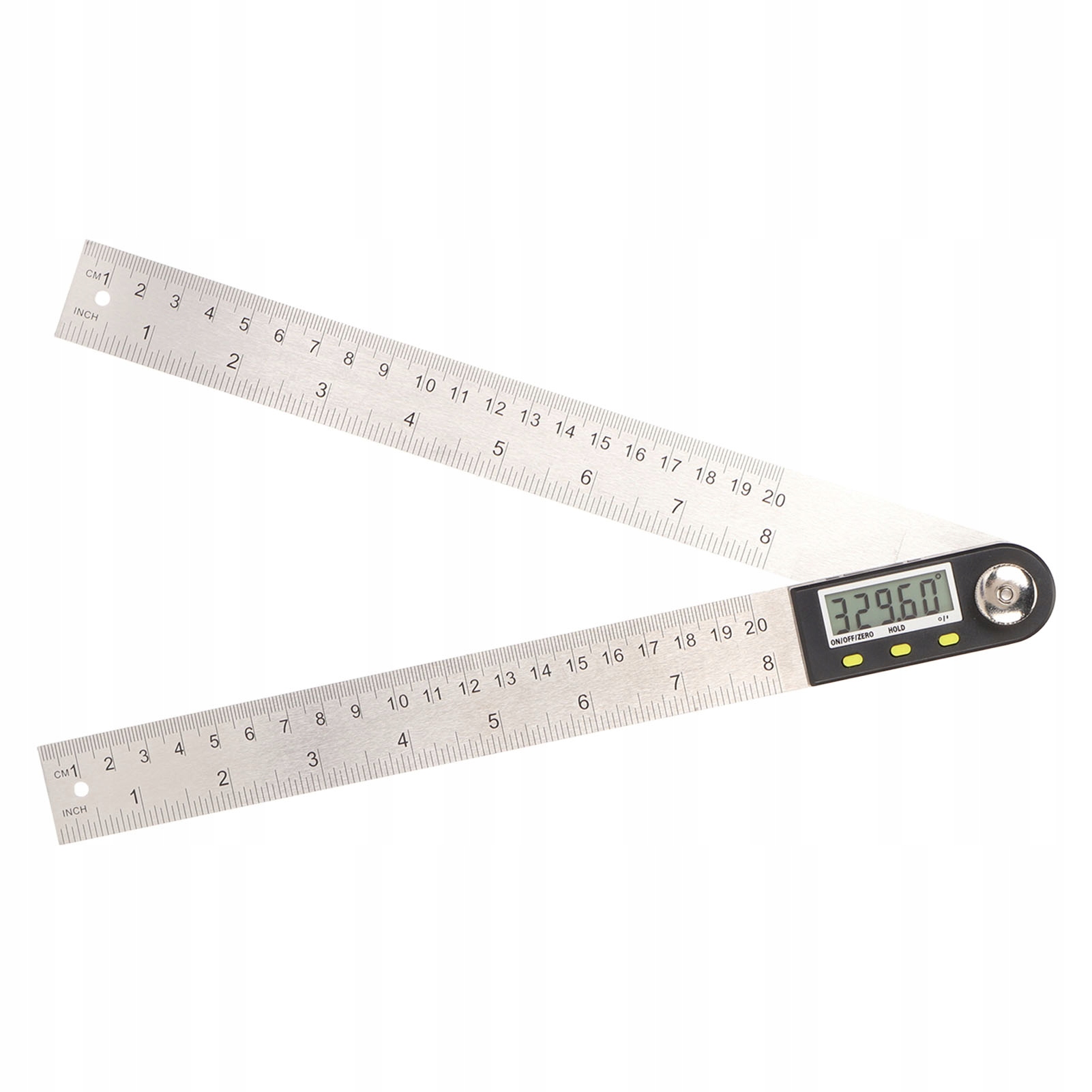 1, висока точність: ця цифрова кутова лінійка підтримує вимірювання кутів від 0 до 360 градусів і використовує ємнісний датчик переміщення, що забезпечує високу точність ±0,3 градуса. 2. Кут і довжина: цей інструмент для вимірювання кута розроблено зі шкалою лінійки з одиницями вимірювання в мм і дюймах, тому він дуже корисний для вимірювання кута та довжини. 3. Функція блокування: цей цифровий транспортир має функцію блокування, яка дозволяє блокувати транспортир під будь-яким кутом, що забезпечує велику зручність. 4、Нержавіюча сталь: цей цифровий кутомір використовує нержавіючу сталь, що забезпечує високу твердість і тривалий термін служби. Живиться від акумулятора CR2032 240 мАг (вбудований акумулятор в комплекті). 5、Портативний розмір: цей ракутомір має невеликі розміри та малу вагу, тож легко поміщається у вашому рюкзаку, сумці для зберігання та ящику для інструментів.