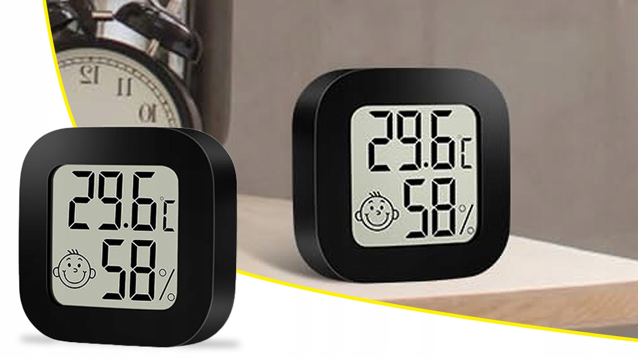 метеостанція з РК -дисплеєм буде чудово працювати у вашому будинку, квартирі чи офісі. Ви можете поставити його де завгодно, наприклад: стіл, стіл, підвіконня або полиця, а вбудований отвір на задній частині корпусу дозволить станціям повісити на стіну. Завдяки своїм розмірам він займає мало місця і ідеально вписується в декор кімнат. Пристрій оснащений великим, розбірливим дисплеєм , що показує температуру (° C), рівень вологості, а також піктограму обличчя, що ілюструє рівень комфорту в кімнаті.