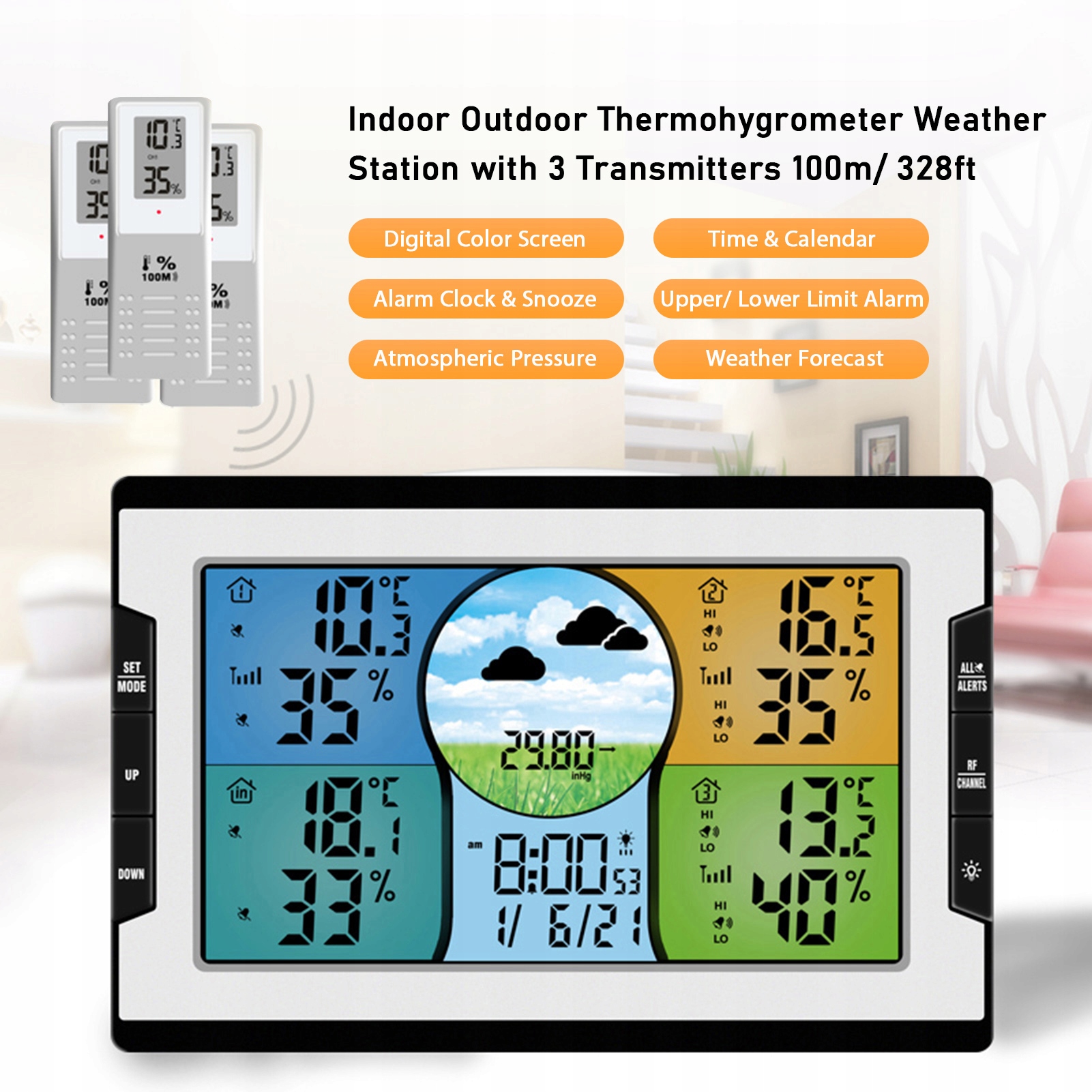 Цифрова метеостанція з 3 дистанційними датчиками 328 футів/ 100 м QH