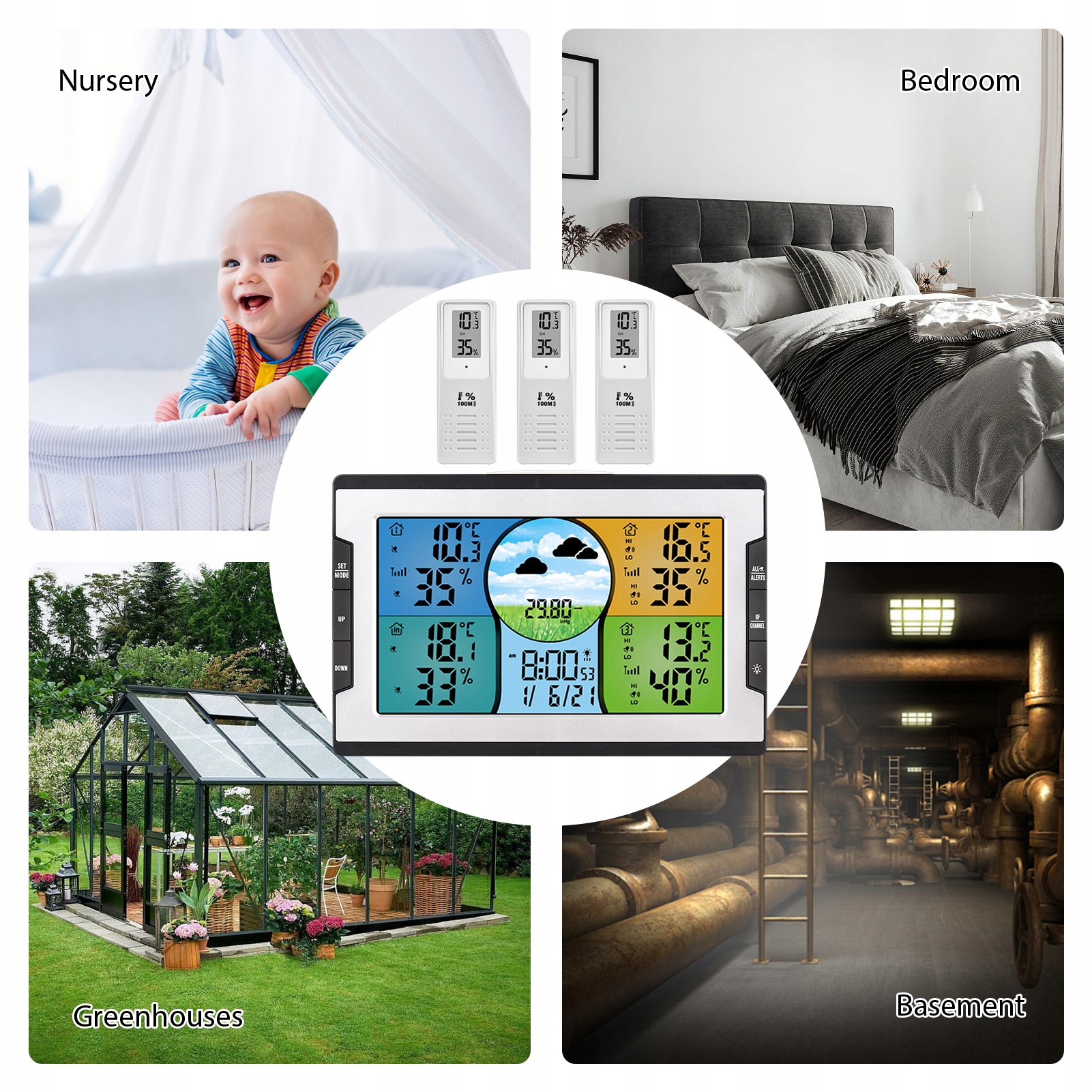 - [Критий термогігрометр зовнішній] Схили лайна до 3 дистанційних датчиків, діапазон передачі близько 100 м (328 футів) у відкритій частині без завдань. Підходить для внутрішніх та зовнішніх місць, таких як спальня, дитяча кімната, офіс, теплиця, підвал з вином, склад тощо. Легка установка, таблетки або будівництво, що висить на стіні.