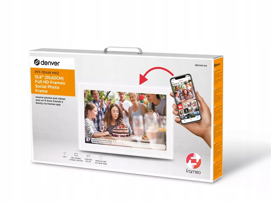Сучасна рамка Denver PFF- 1514 Frameo 15.6"у сучасному корпусі дозволить комфортно переглядати фотографії прямо з карти MicroSD або надіслані з телефонуна екран 15.6"