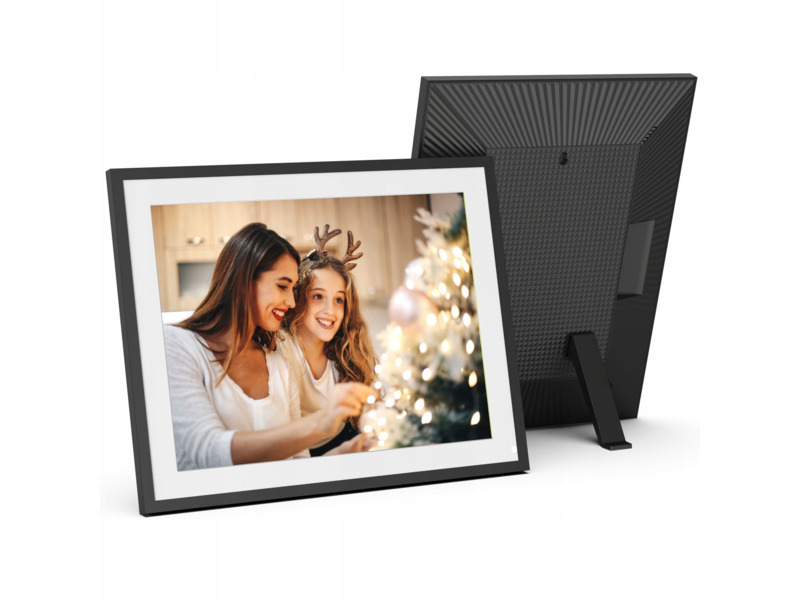 Digital LCD HD 17" WiFi рамка з сенсорним екраном. Має автоматичний поворот зображення, що дозволяє встановлювати її в горизонтальне або вертикальне положення. Рамку можна повісити або встати - має знімну ніжку. Ще одне цікаве рішення - датчик руху - рамка сама вимикається і прокидається, коли він визначає рух.