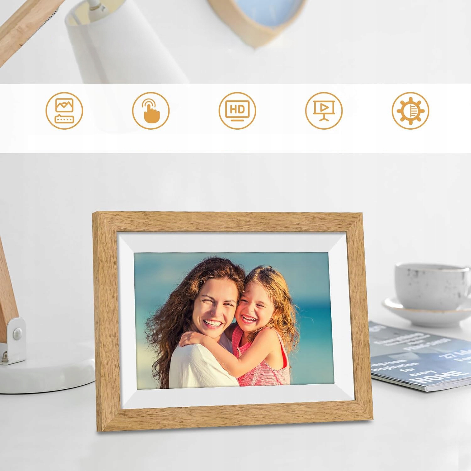 [Насолоджуйтесь візуальним задоволенням] - 10,1-дюймова інтелектуальна фоторамка HD оснащена високоякісним сенсорним екраном IPS із роздільною здатністю 1280 x 800, який представляє фотографії та відео з цифрових альбомів із надзвичайною чіткістю та яскравими кольорами. Широкий кут огляду дозволяє кожному насолоджуватися захоплюючим переглядом під будь-яким кутом.