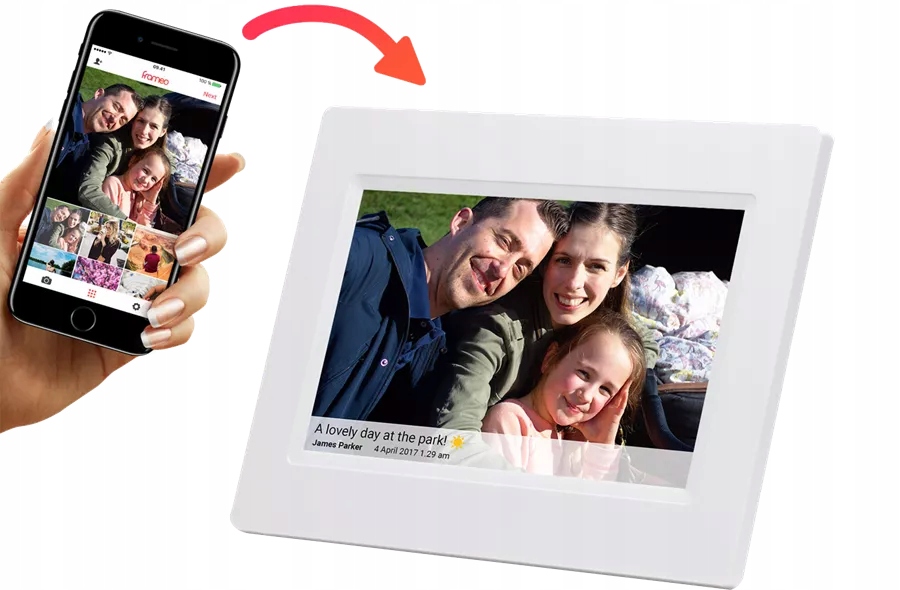 7-дюймова цифрова рамка Wi-Fi із програмним забезпеченням FRAMEO: надсилайте фотографії зі свого додатка на смартфоні безпосередньо в рамку з будь-якого місця! Це новий спосіб ділитися фотографіями з друзями та родиною. Сенсорний екран IPS гарантує хороші чіткі фотографії.