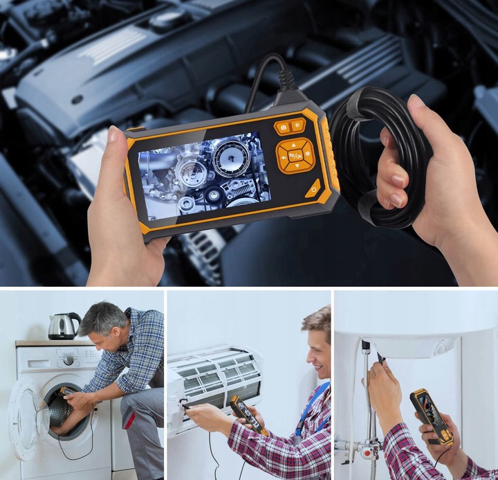 - Професійна оглядова камера з власним дисплеєм — це пристрій, який покращить якість вашої роботи. . Завдяки йому ви зможете дістатися до будь-якого важкодоступного місця навіть у темряві. Камера функціонує повністю незалежно від інших пристроїв, тому вам більше не знадобиться смартфон, планшет або комп’ютер для її роботи!